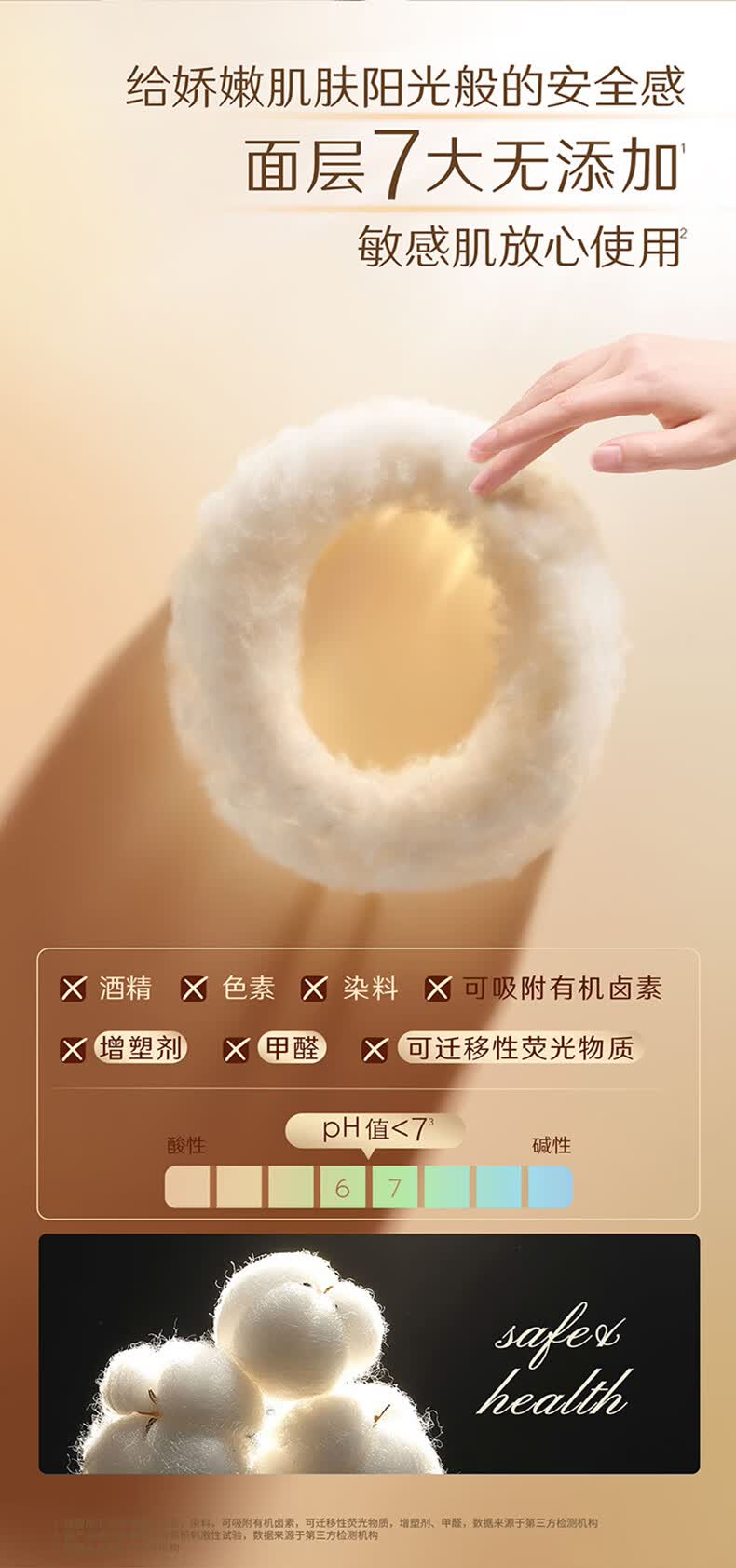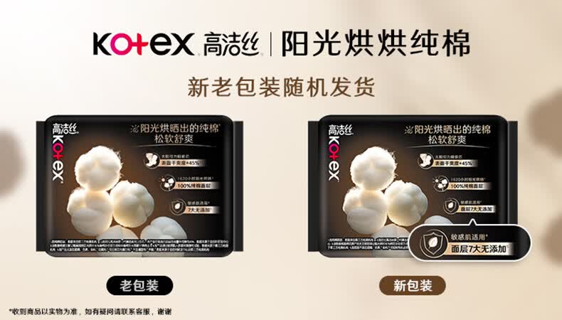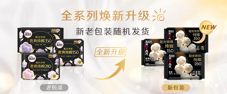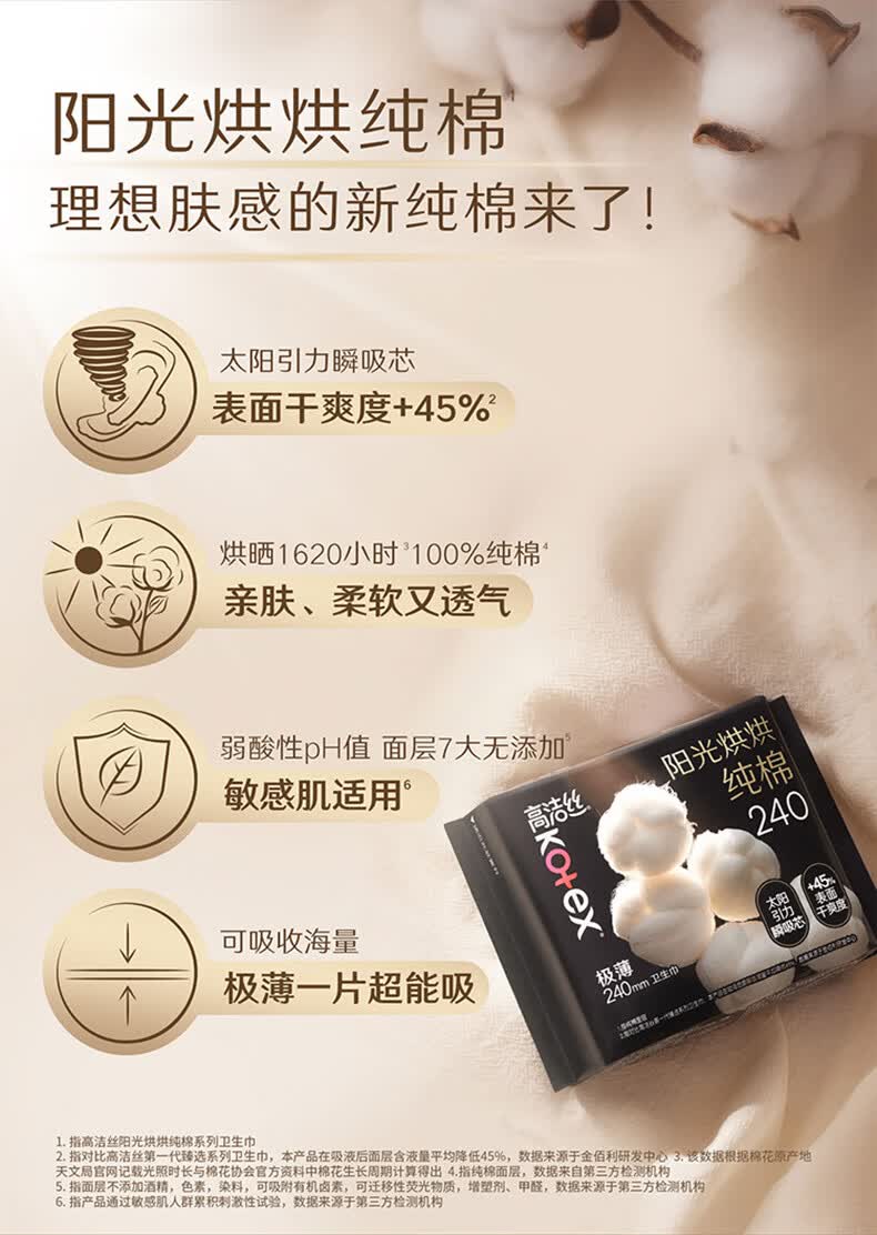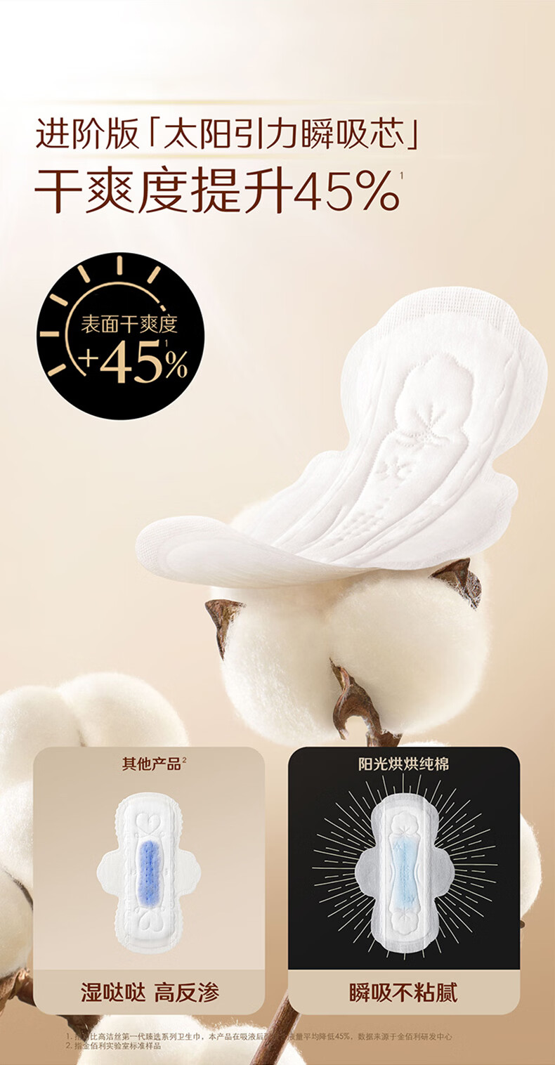高洁丝(Kotex)阳光烘烘臻选纯棉面层日用卫生巾240mm亲肤姨妈巾 臻选纯棉240mm54片
