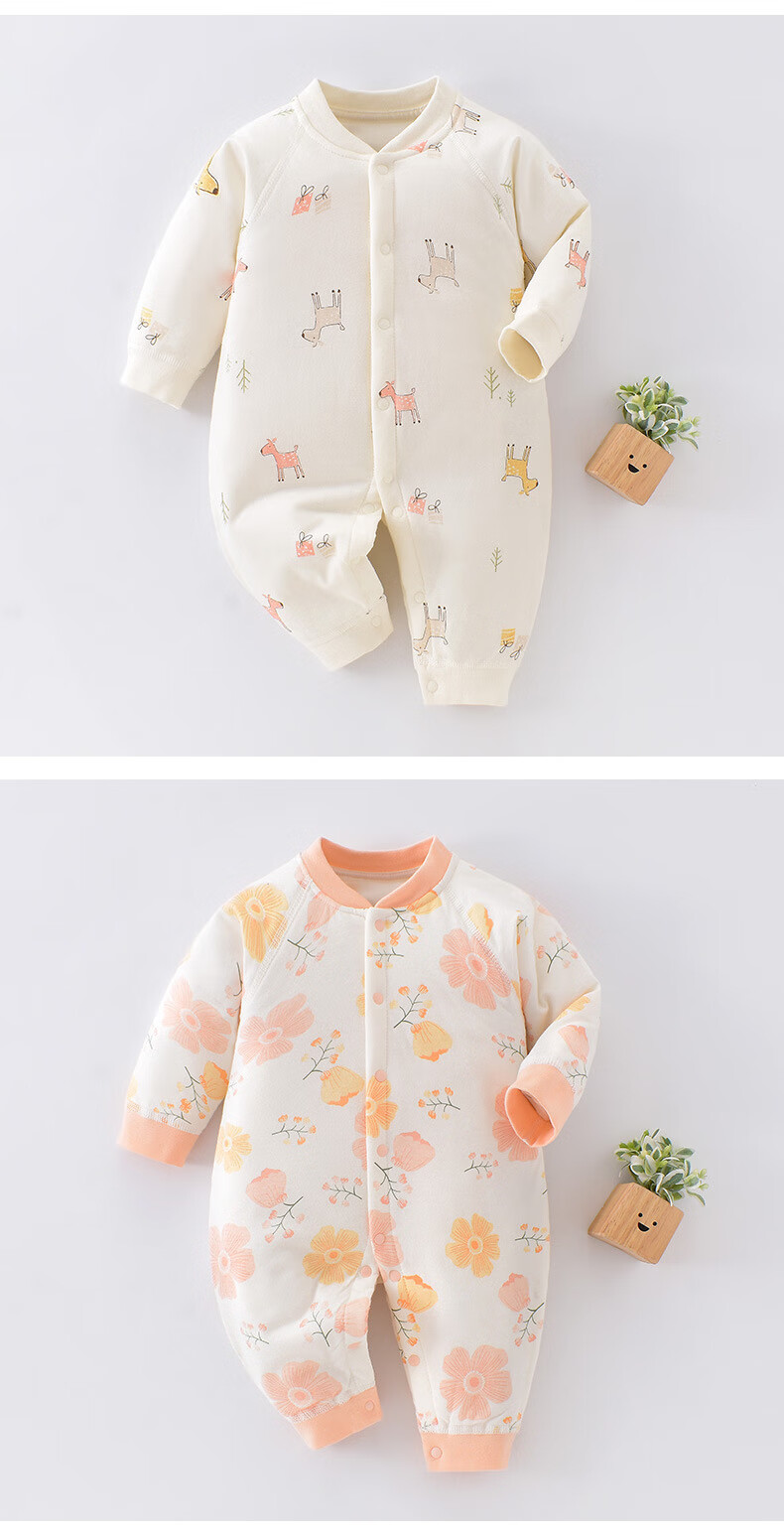 温小影 HELLO YING婴儿衣服秋冬款纯棉40克薄棉连体衣对开哈衣男女宝宝保暖棉衣棉服 小鹿【薄棉连体衣】 90cm