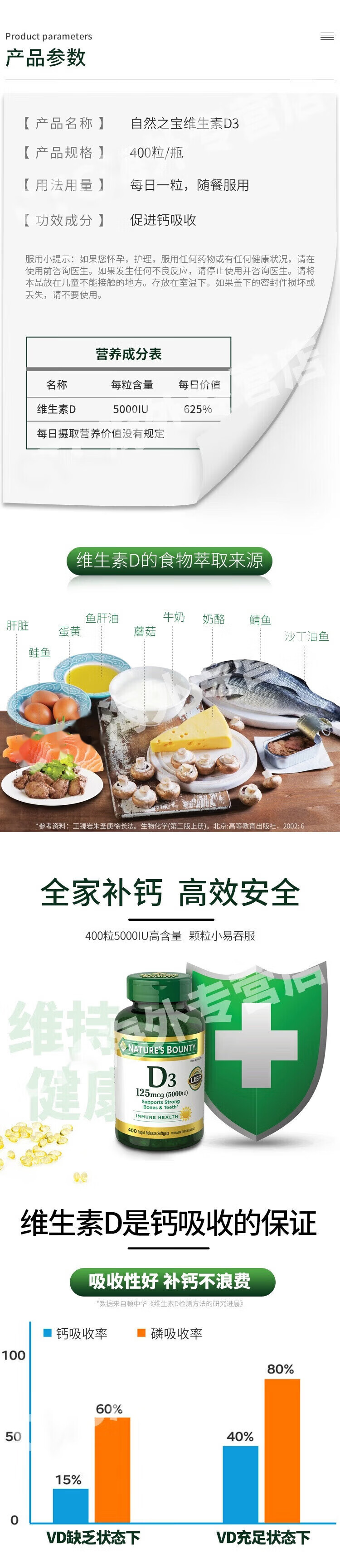 自然之宝(Nature's Bounty)维生素d3原装进口阳光瓶5000IU 成人中老年补钙促钙吸收 1瓶 美国原装进口*400粒