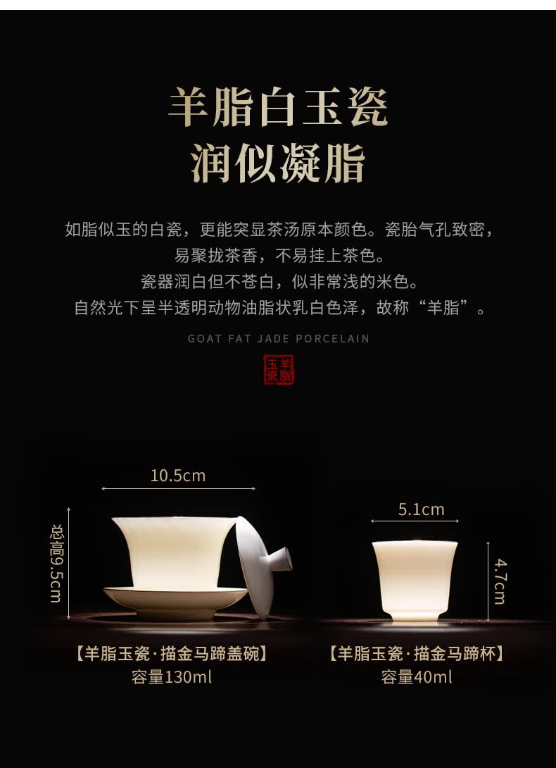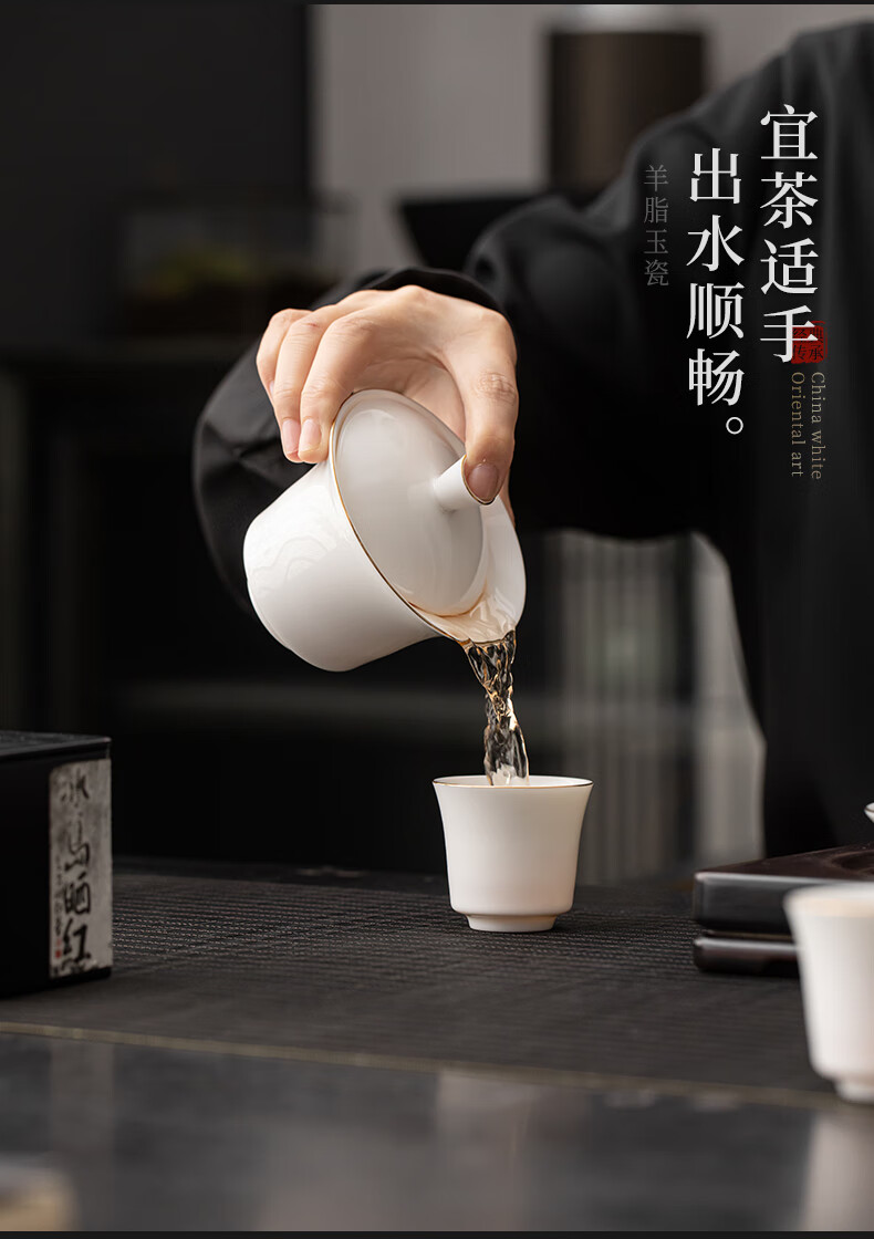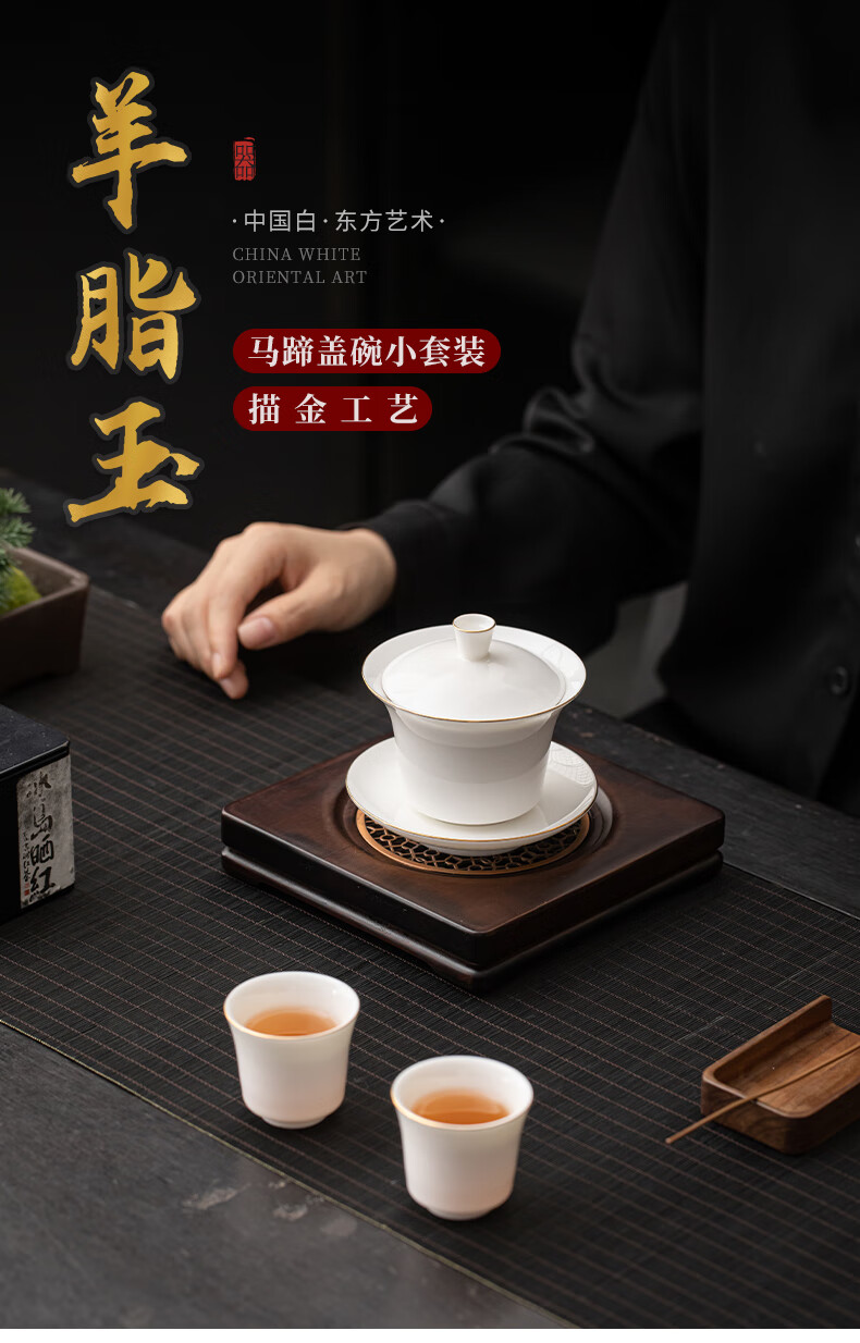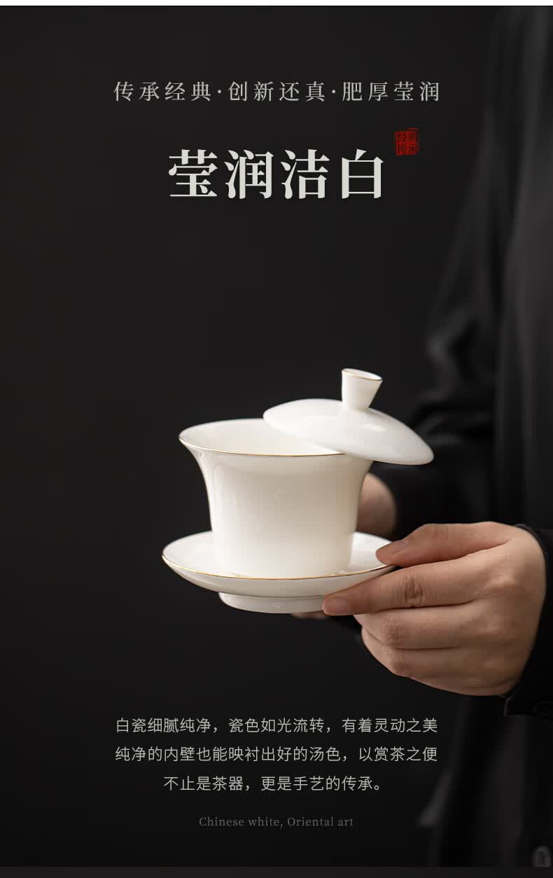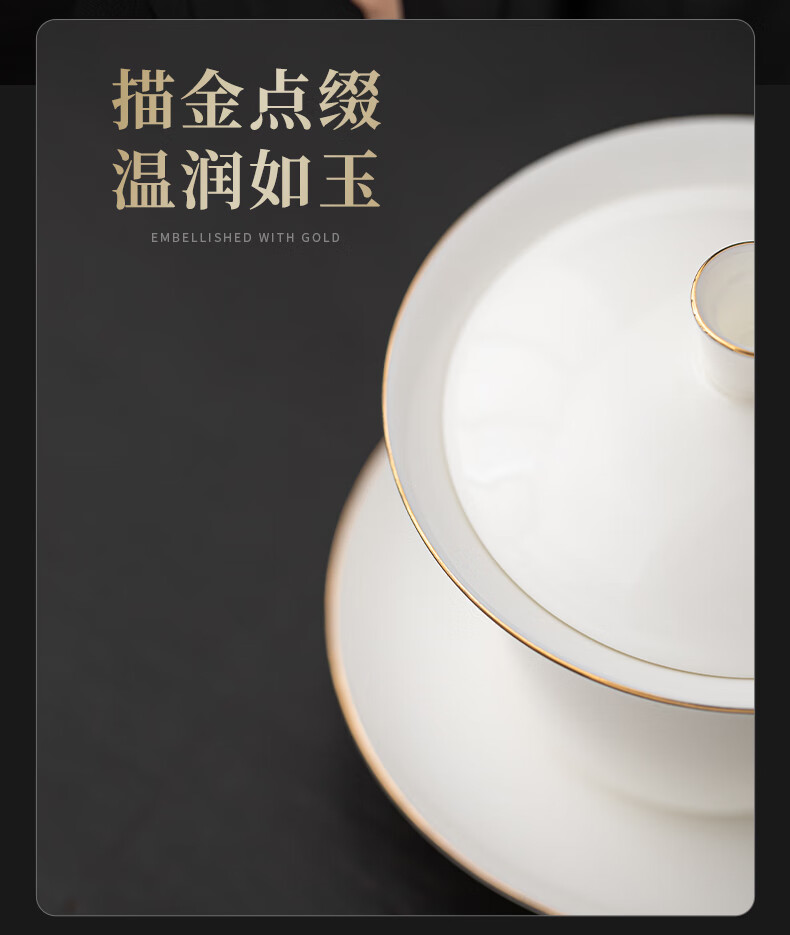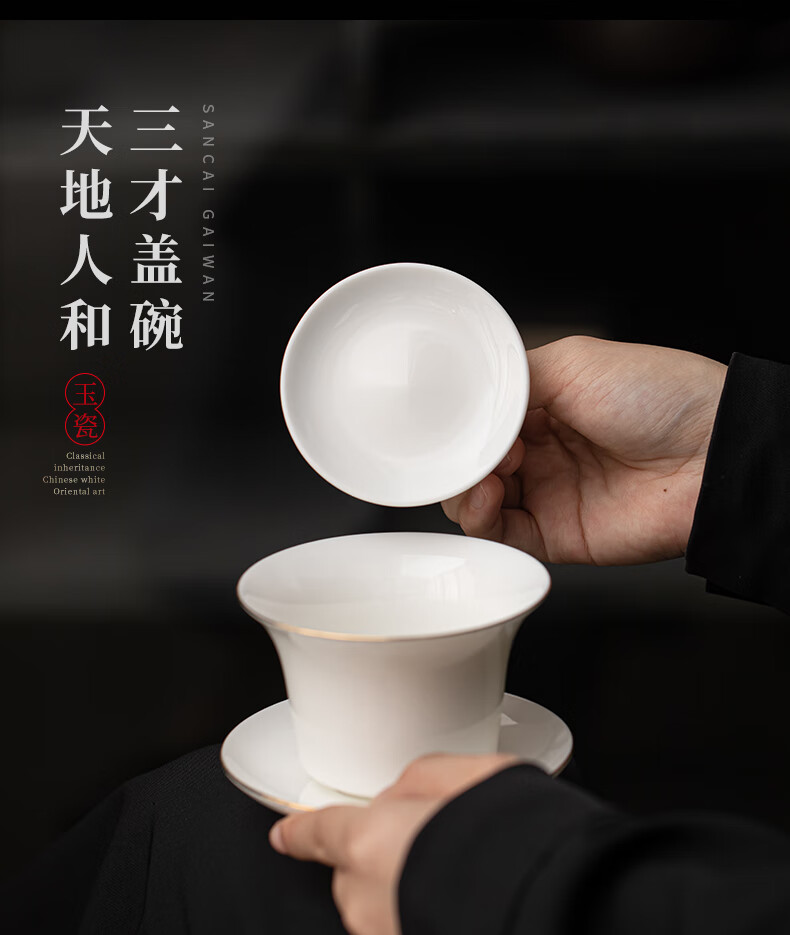 苏氏陶瓷悬停马蹄三才盖碗羊脂玉描金德化白瓷功夫茶具泡茶碗茶备J1038