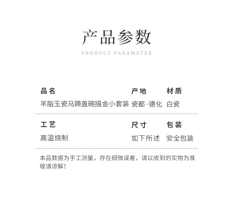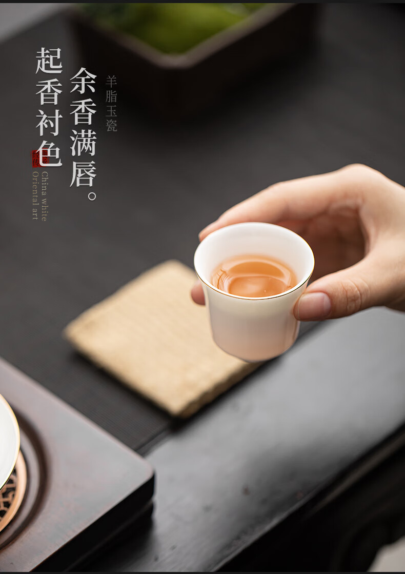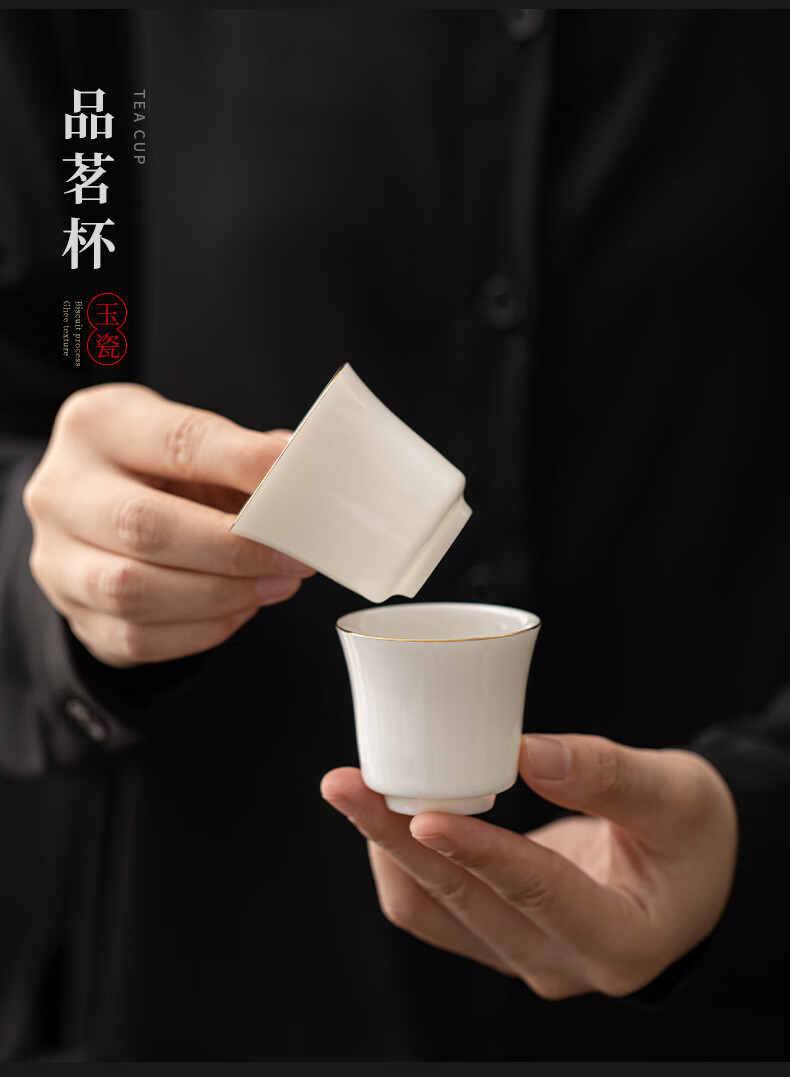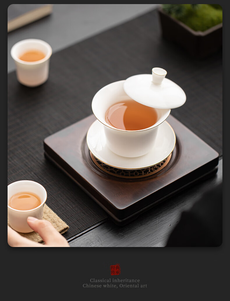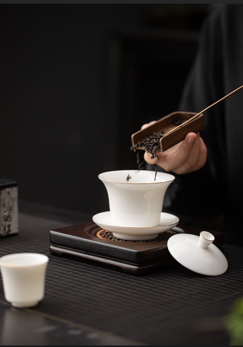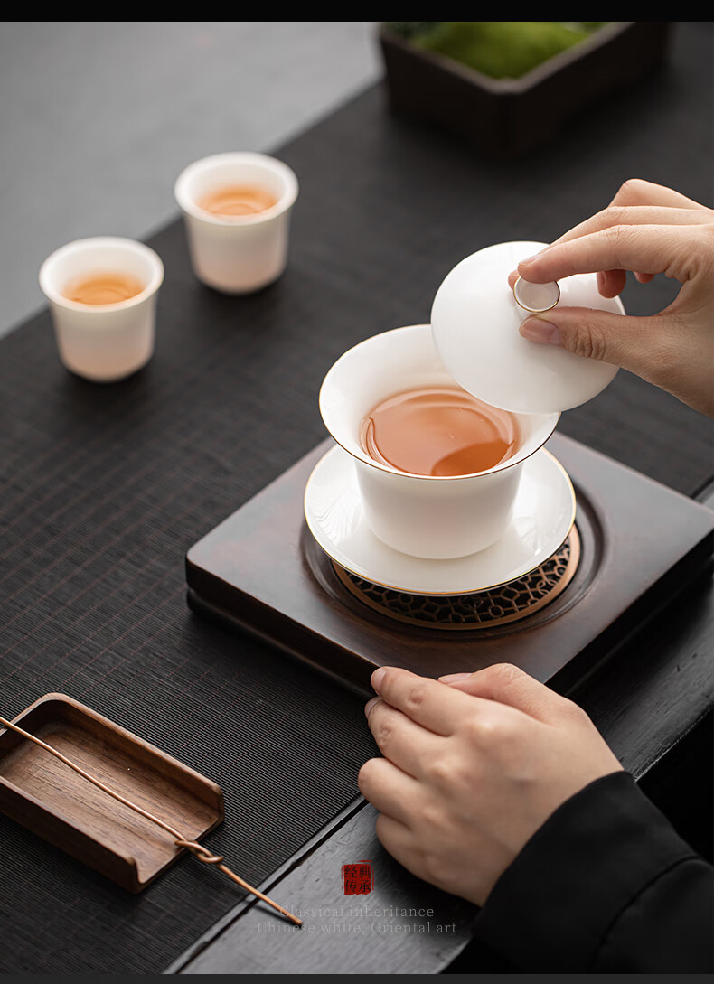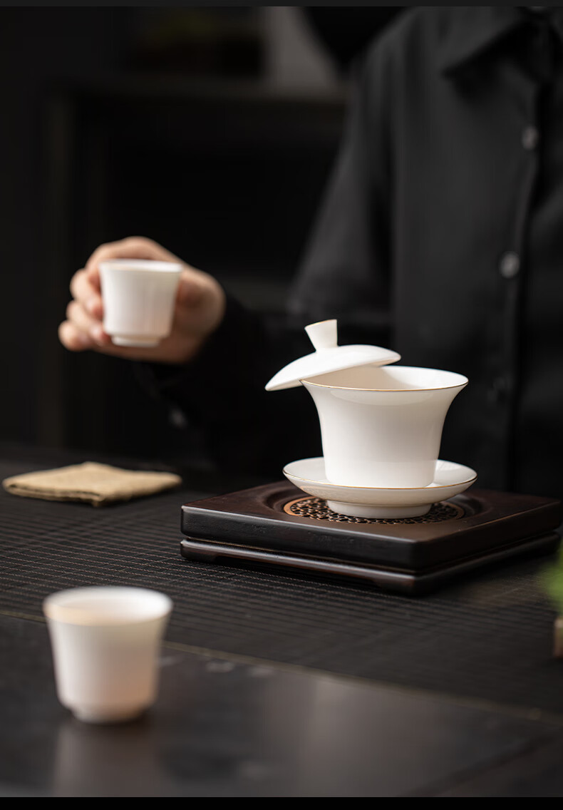 苏氏陶瓷悬停马蹄三才盖碗羊脂玉描金德化白瓷功夫茶具泡茶碗茶备J1038