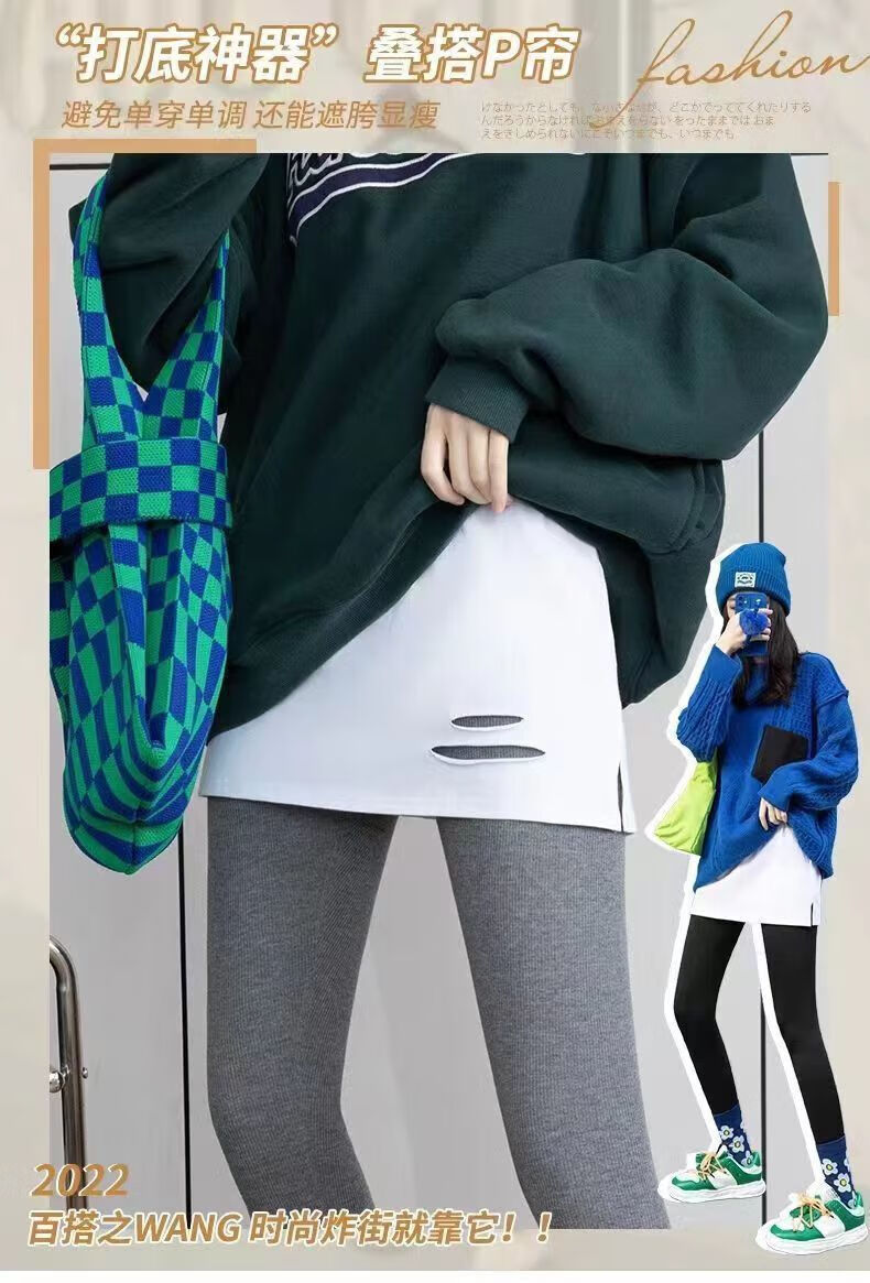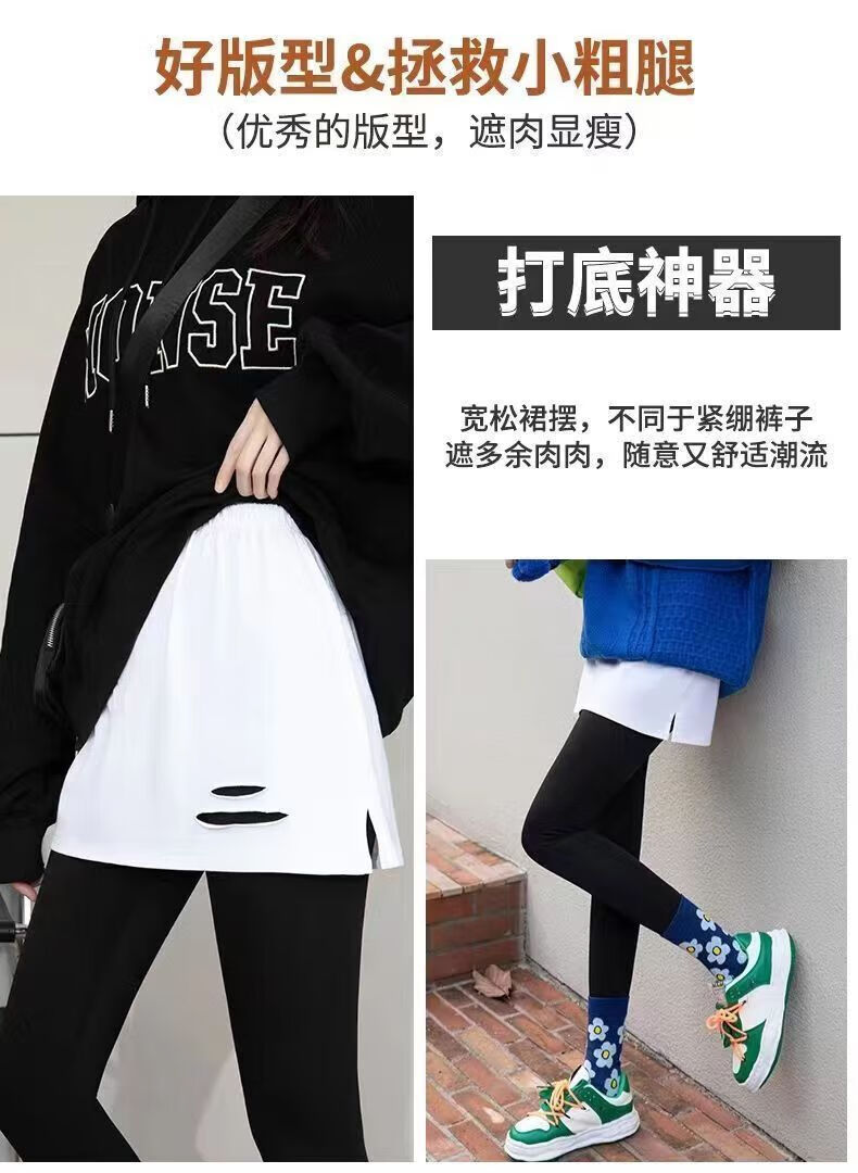 |【优选】卫衣打底秋冬下摆屁股屁帘叠小屁帘叠半身裙女百搭帘子短 【2条】破洞款 均码 潮流百搭丨休闲丨
