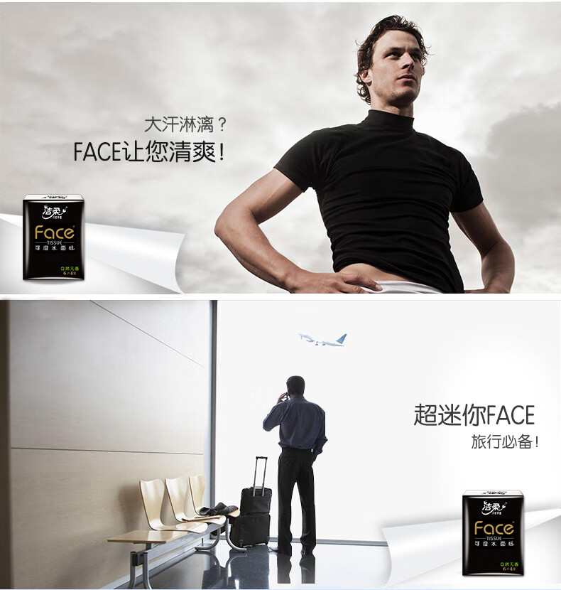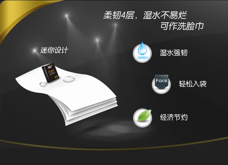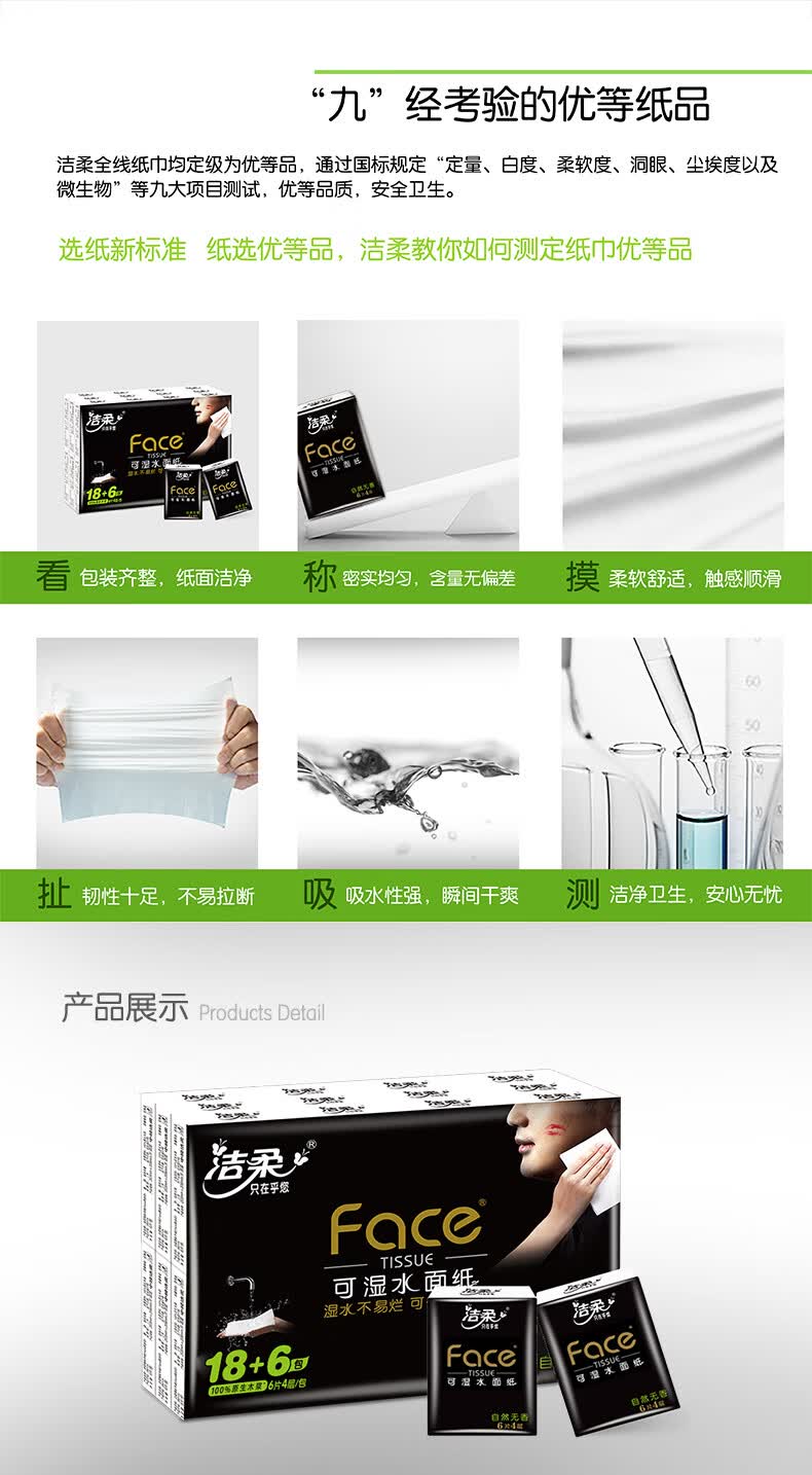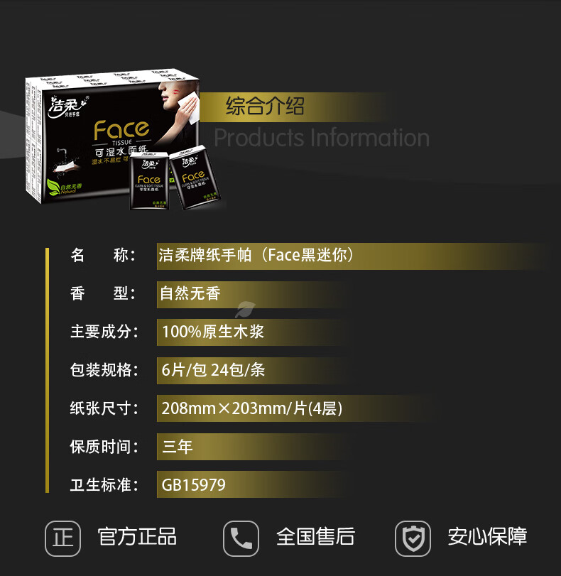 洁柔手帕纸黑Face迷你4层6片24包 强韧可湿水纸巾小包便携式无香