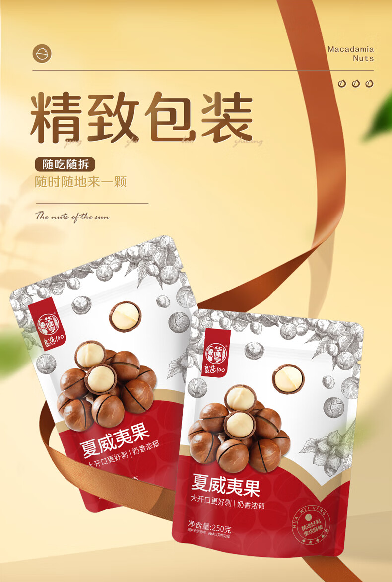 华味亨 夏威夷果250g/袋 奶油味坚果零食干果含开口器办公室小吃团购 250g*1袋(推荐)