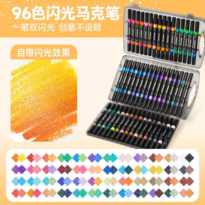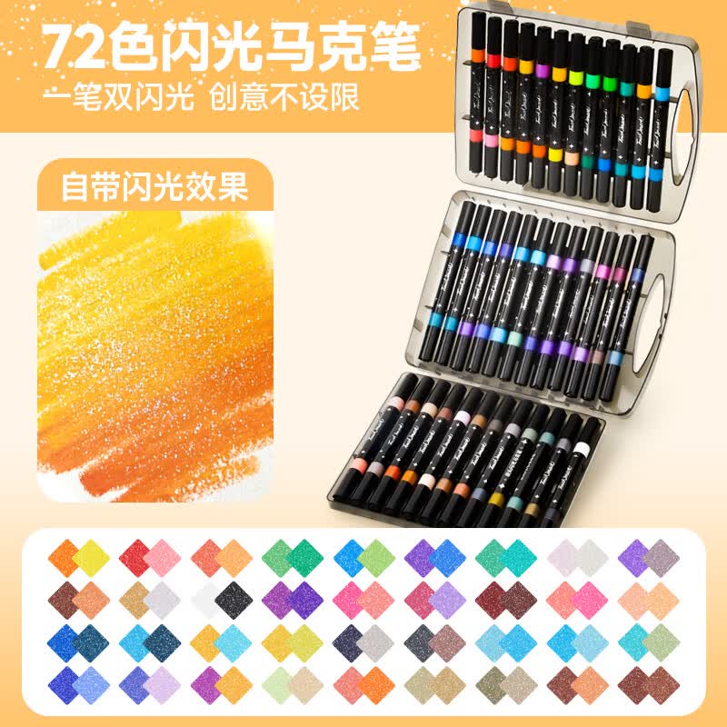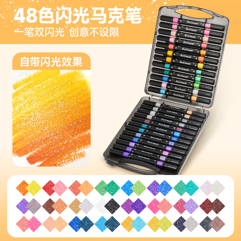 Touch mark爆闪双头丙烯马克笔48色软头24支亮闪闪发光流光闪粉啫喱水彩笔荧光笔手抄报学生手账儿童节礼物