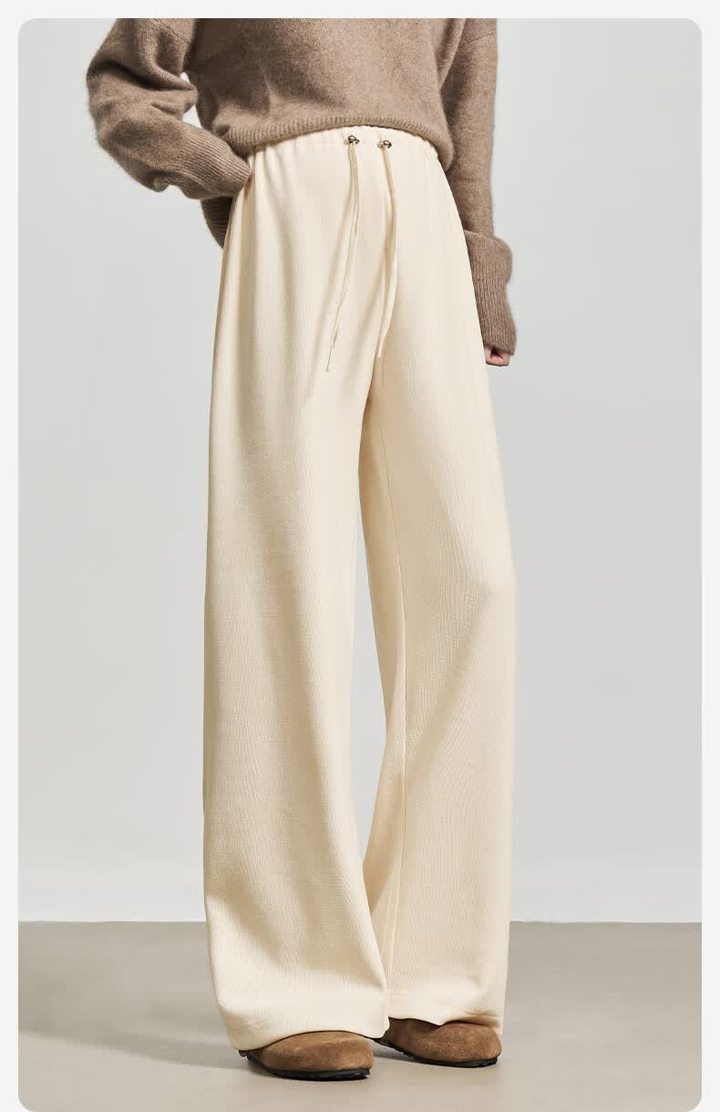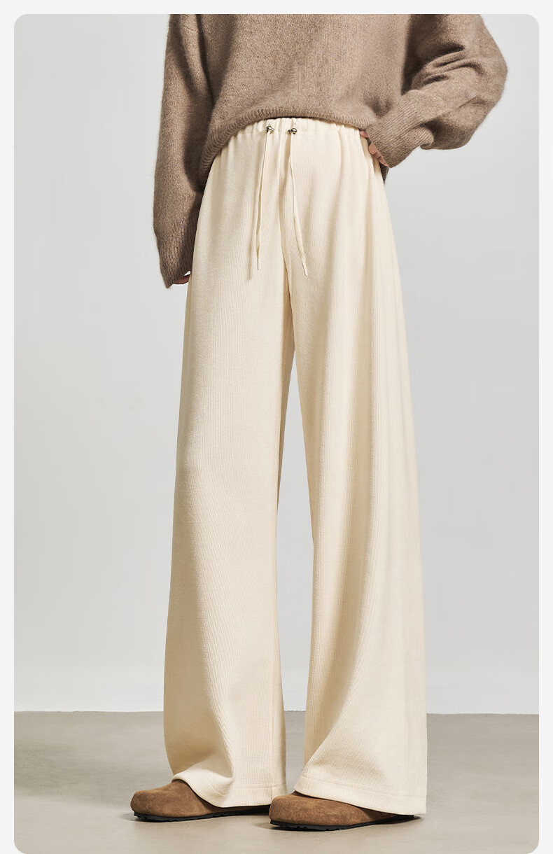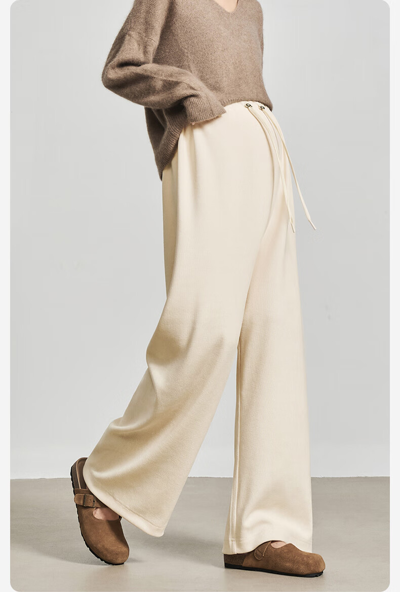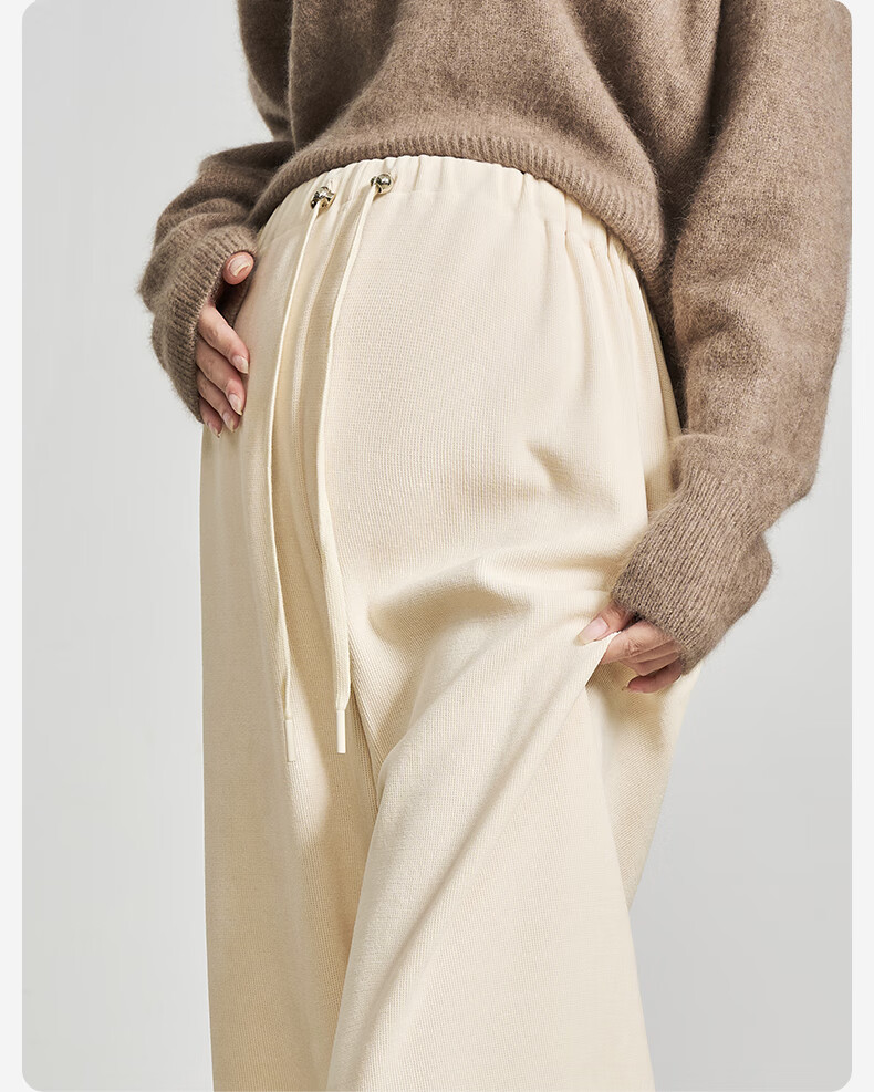 十月结晶孕妇裤春秋四季抽绳式阔腿裤直筒宽松休闲裤大码孕妇装 米色XL码