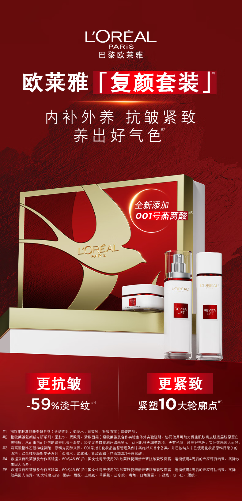 欧莱雅复颜水乳霜礼盒套装燕窝酸补水护肤品母亲节礼物送妈妈
