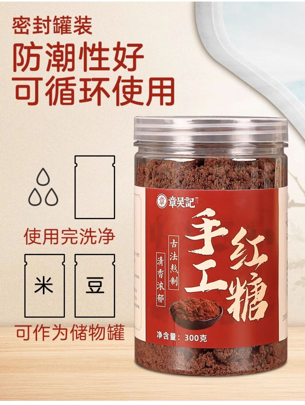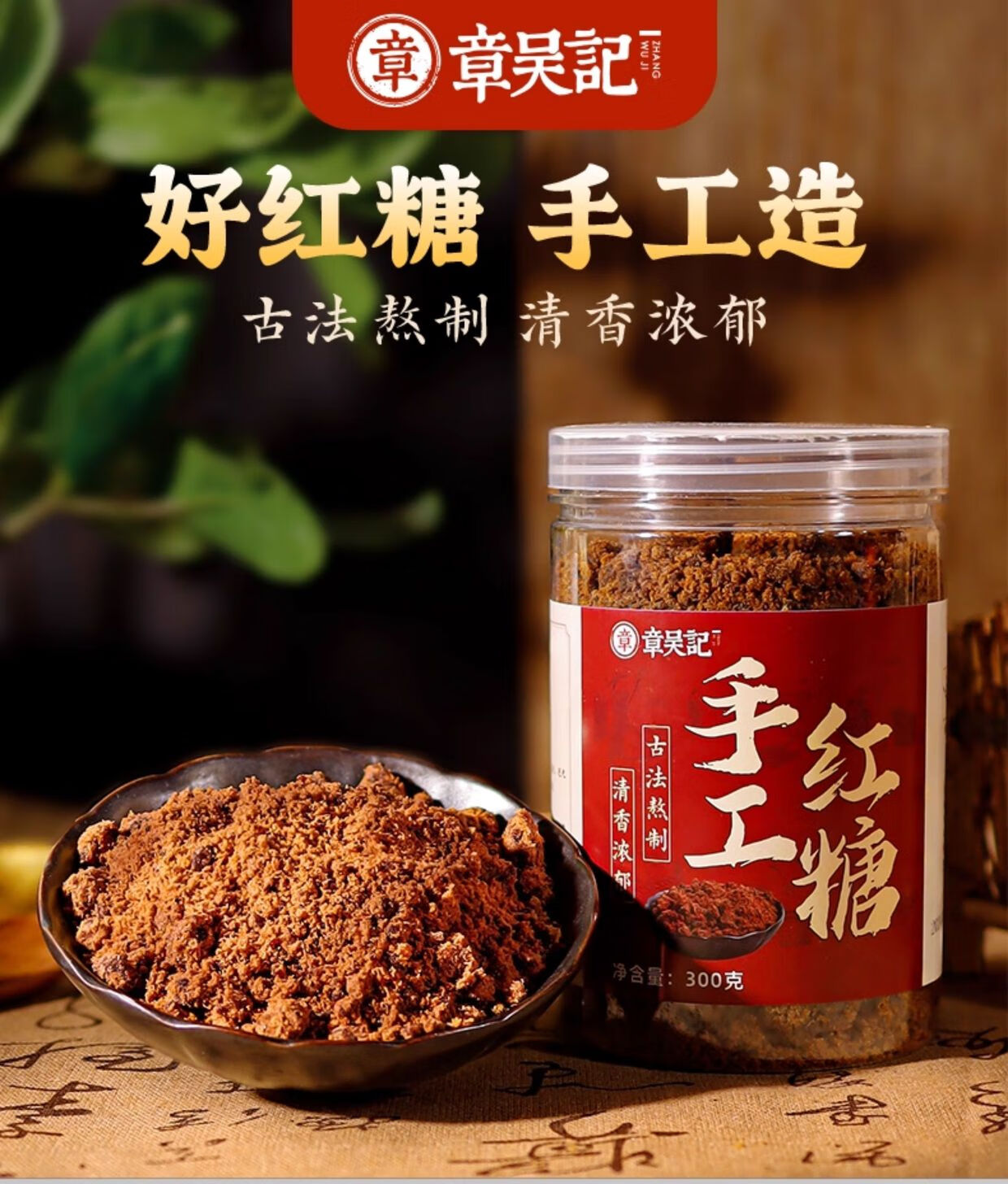 章吴记甘蔗红糖正宗古法手工红糖粉一级正品纯正红糖批发大姨妈300g*1罐