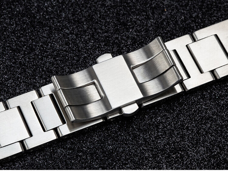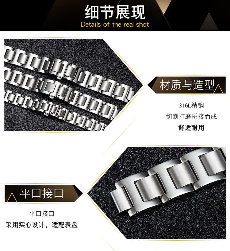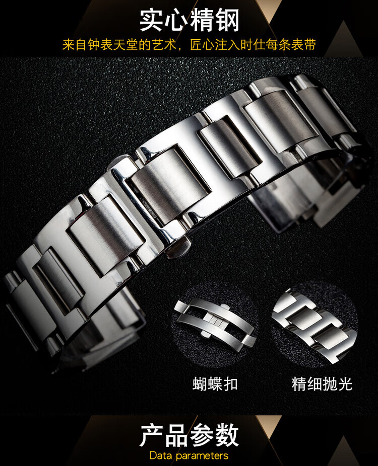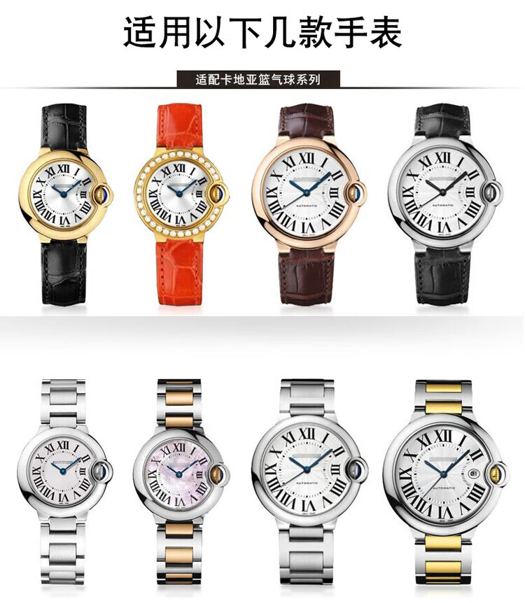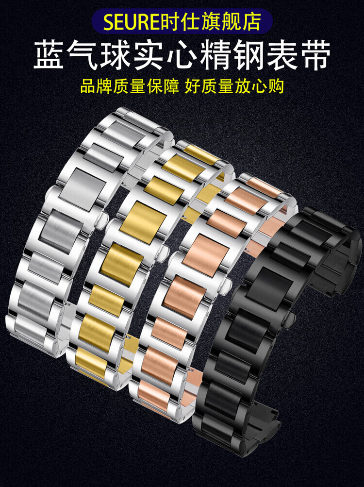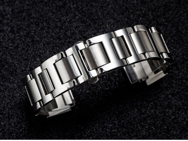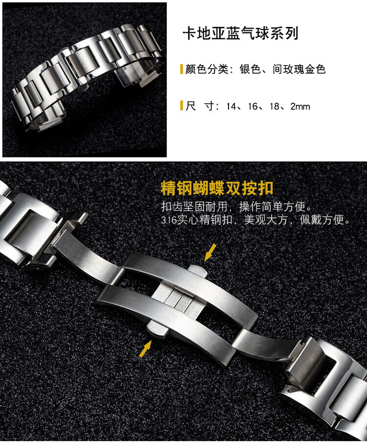 适配卡地亚蓝气球表带钢带男女不锈钢手表带金属表链凹凸接口表带 银色 接口宽度:8.16mm