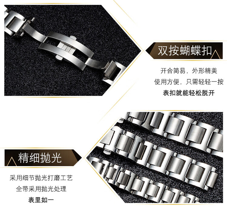 海鸥表带真皮头层牛皮手表带蝴蝶扣原装款式819.317/219.32820mm 黑色黑线+银蝴蝶扣 20mm接口宽度
