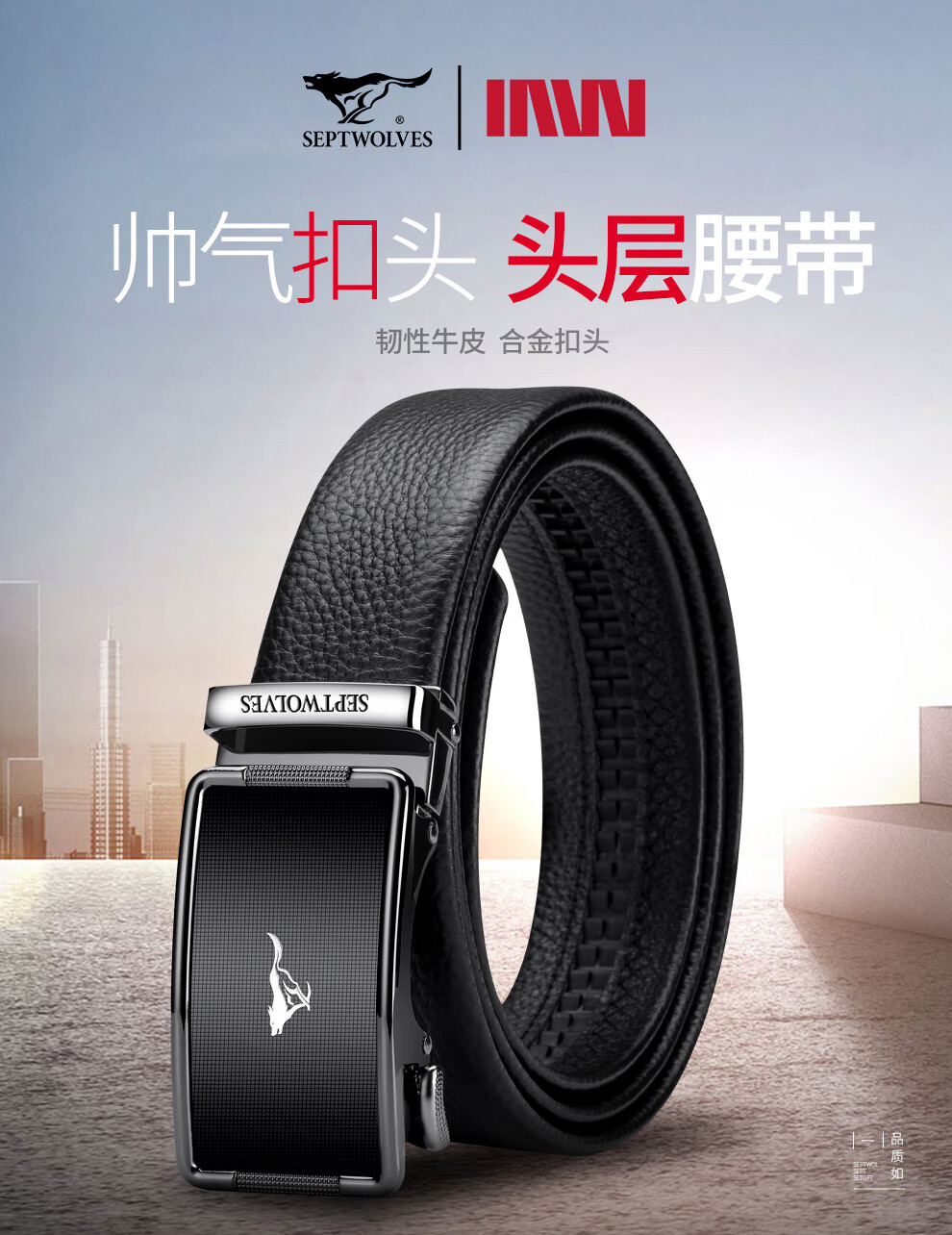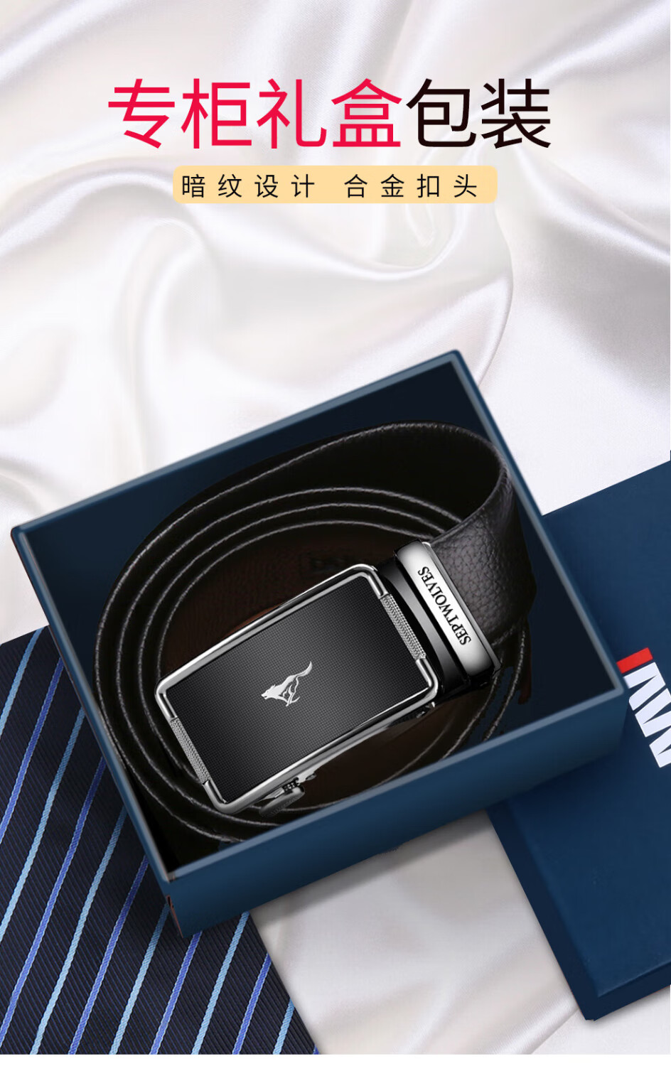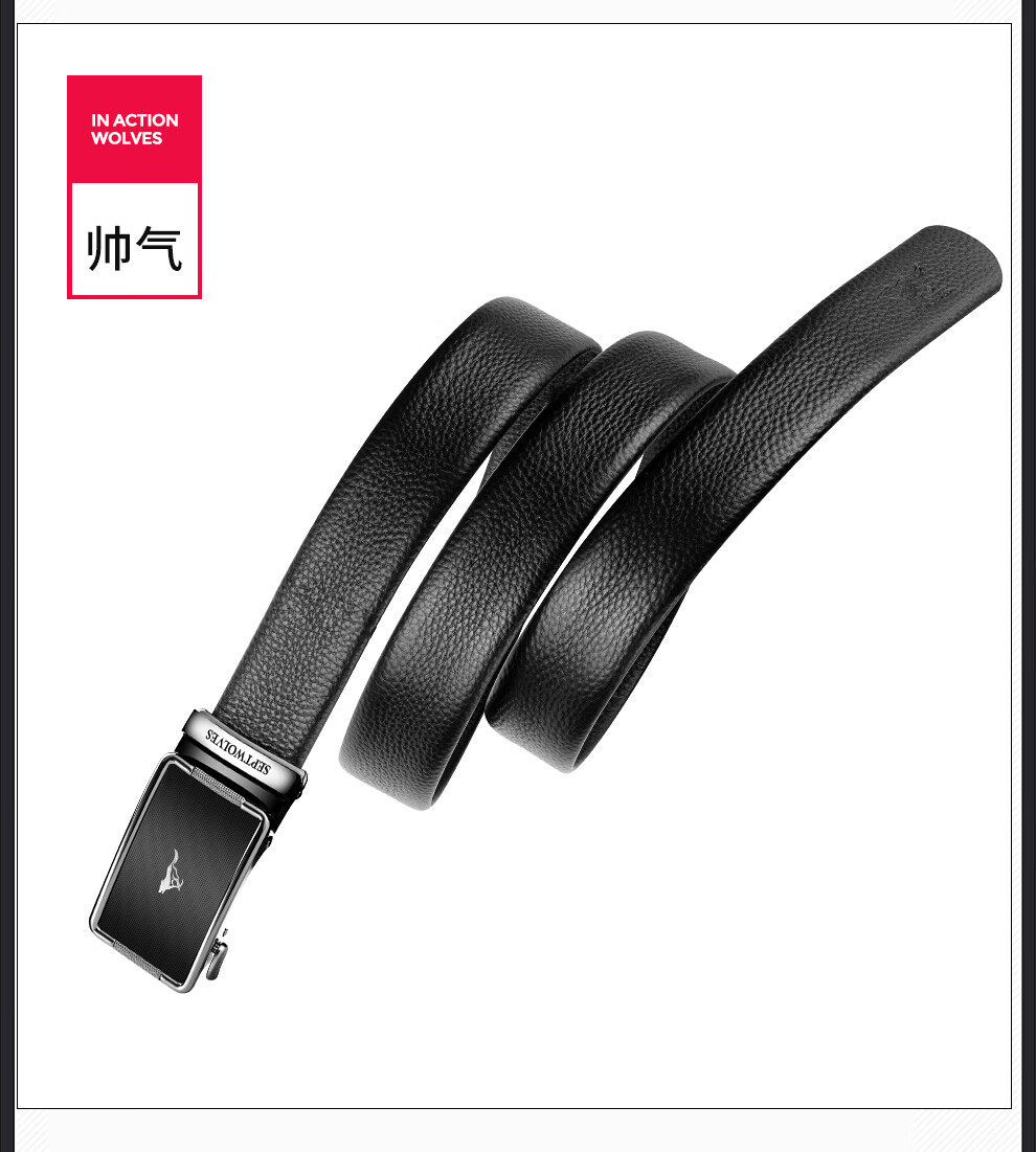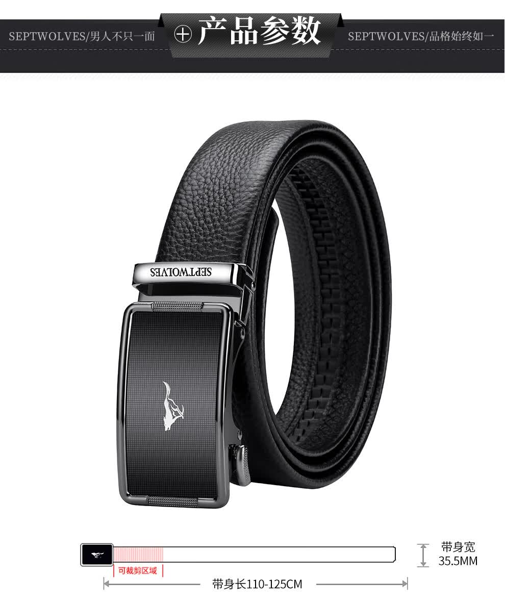 七匹狼皮带男士真皮自动扣休闲头层牛皮裤腰带生日礼物送男友老公送爸爸 黑色-专柜礼盒装110-125cm需指定请留言
