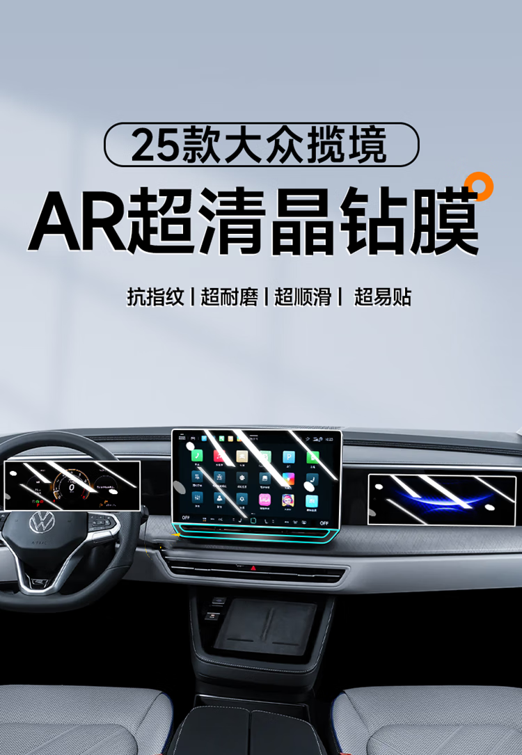 二膜适用2026款大众揽境导航钢化膜中控显示屏幕内饰保护贴膜改装配件 25-26款大众揽境【仪表+导航+副驾】钢化膜 磨砂防反光钢化膜