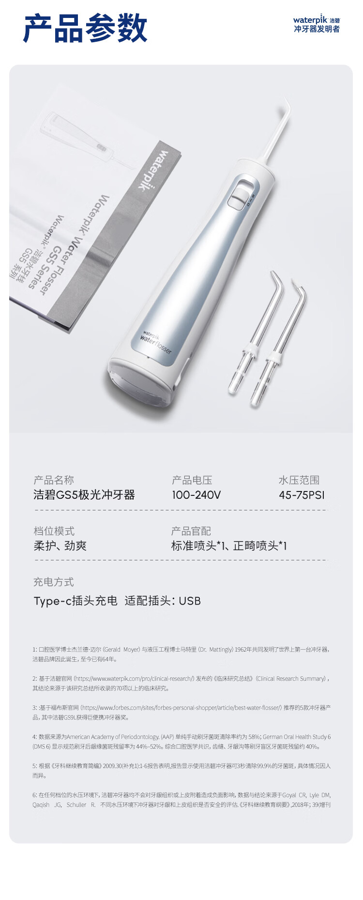 洁碧冲牙器GS5极光蓝 成人儿童便携式冲牙器电动洗牙器水牙线洁牙器牙齿冲洗器专业正畸 生日礼物