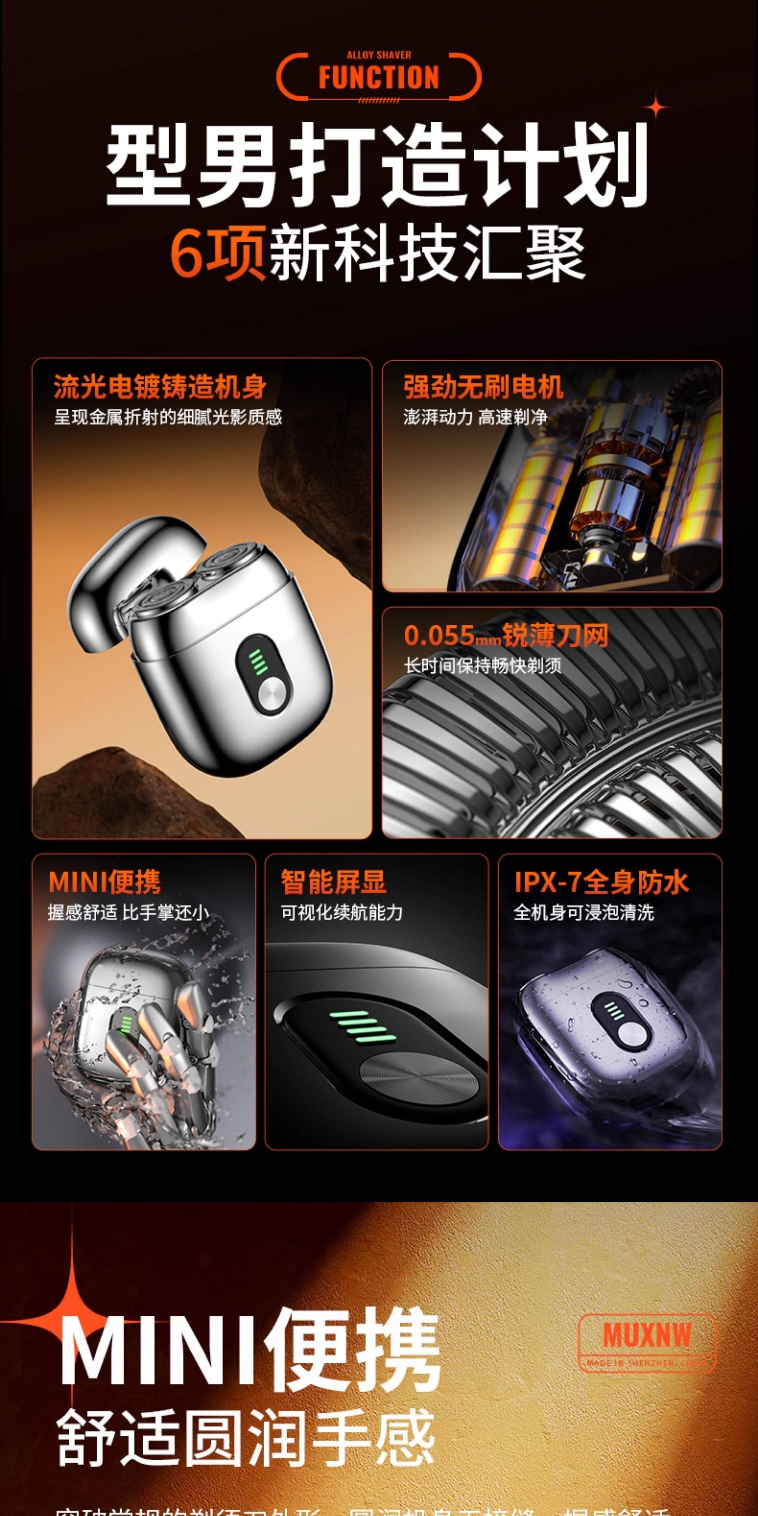 GROOUZ德国品牌2026新款剃须刀男士电动刮胡刀胡须刀全身水洗迷你旅行便携送男友老公父亲生日520礼物 电镀银【NEW FLAGSHIP MODEL】