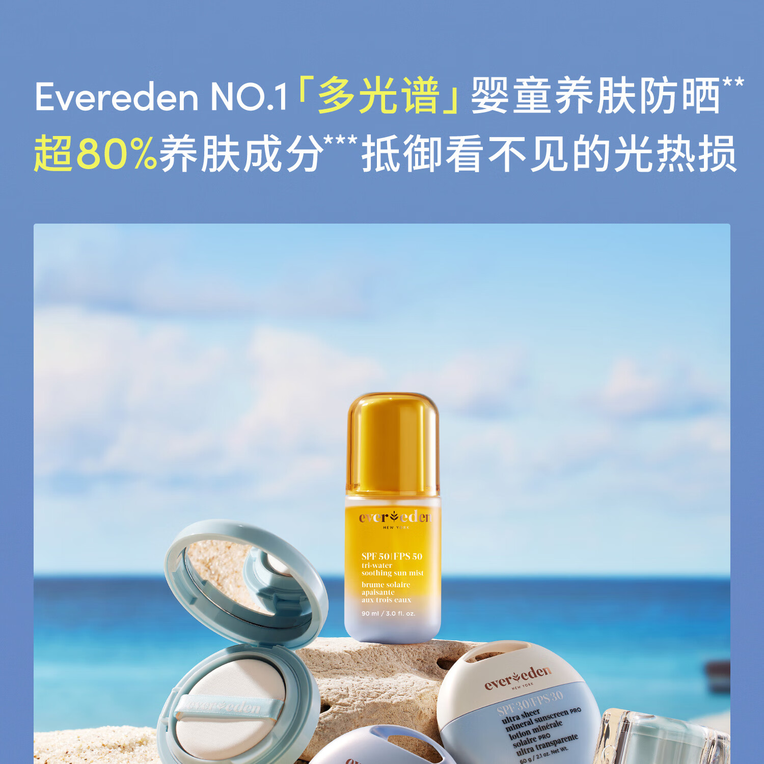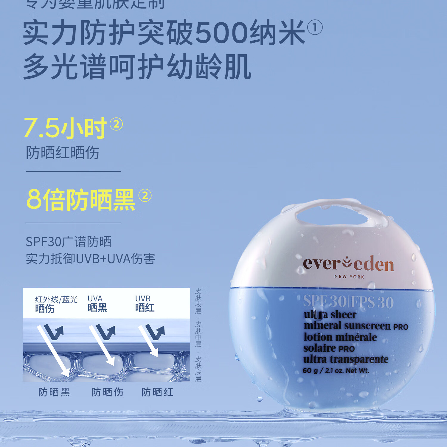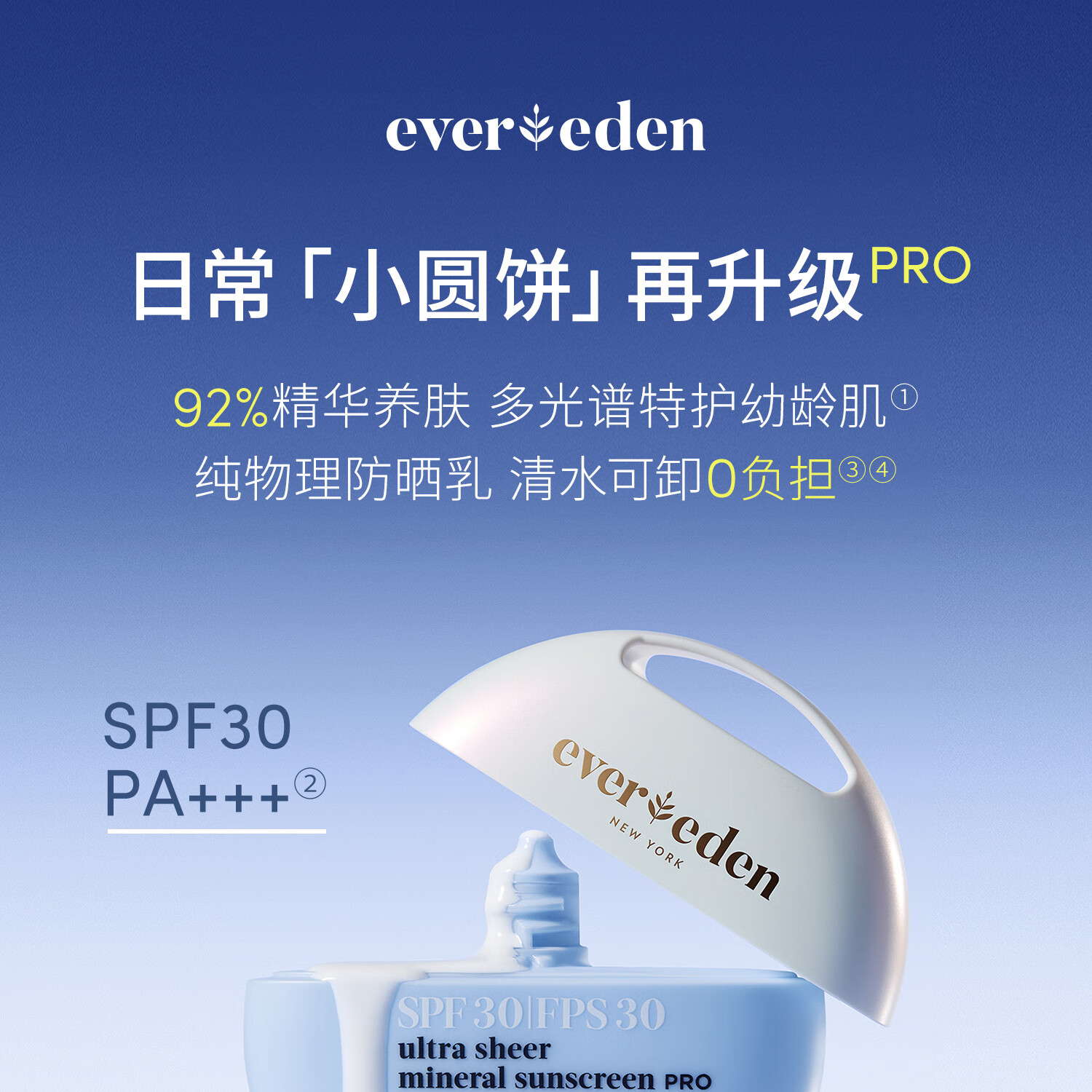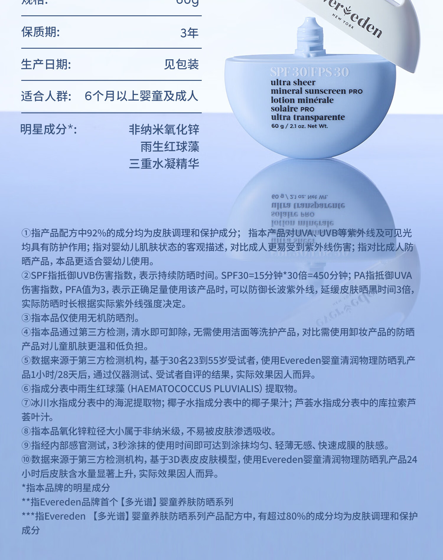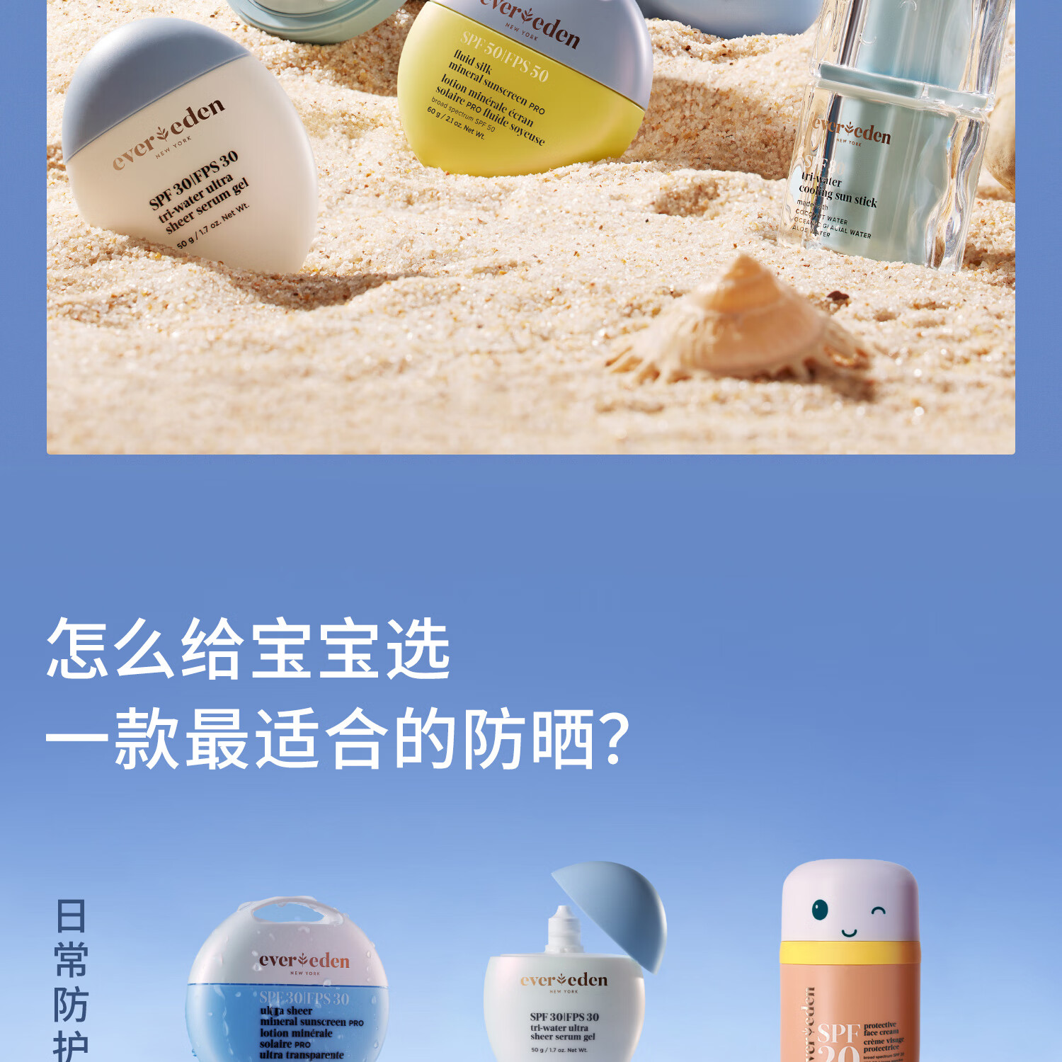 EVER EDEN夏日儿童防晒霜清润物理养肤婴儿防晒SPF30 PRO 60g适用6个月+
