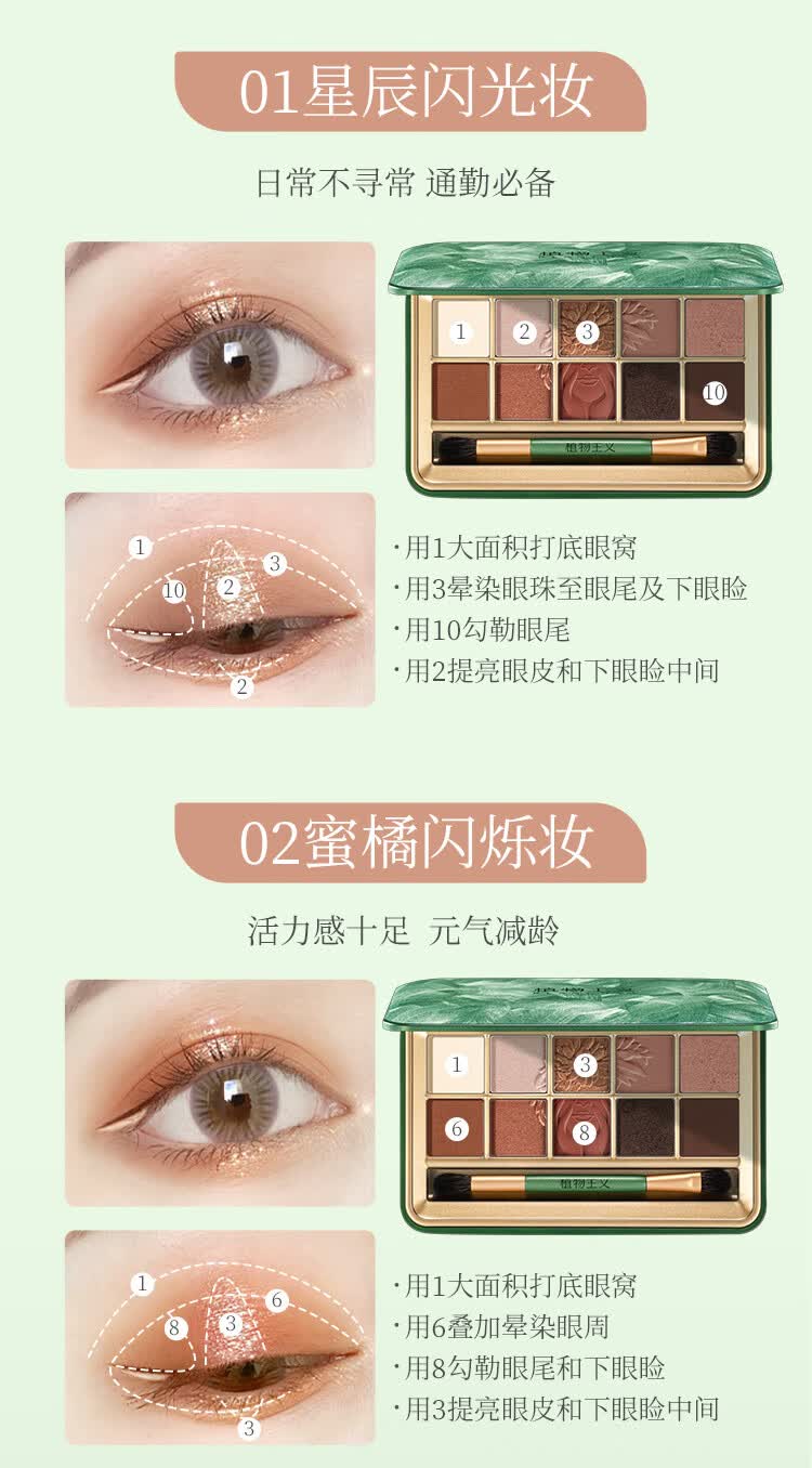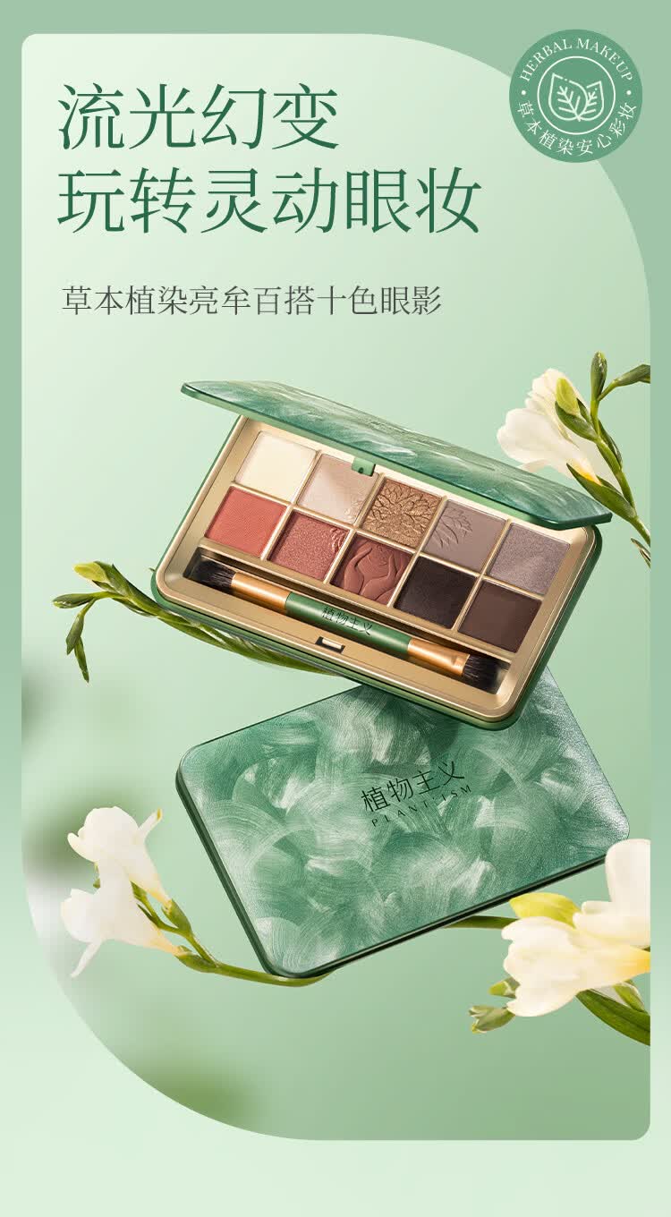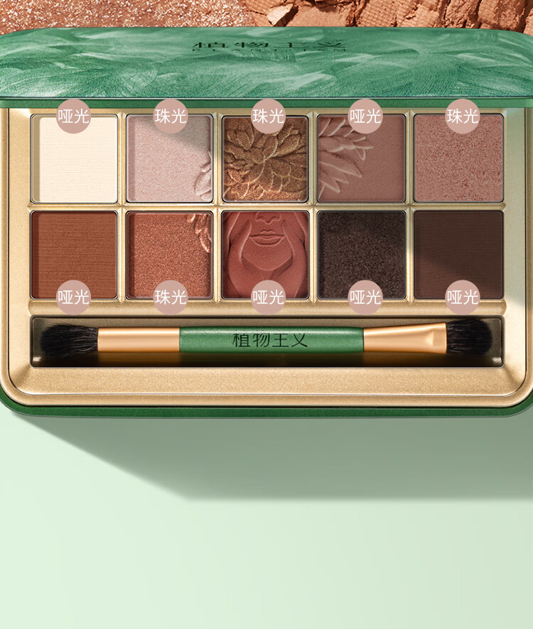 植物主义眼影哑光大地色灰粉色新手眼影橘棕盘女用眼影盘彩妆草本十色眼影