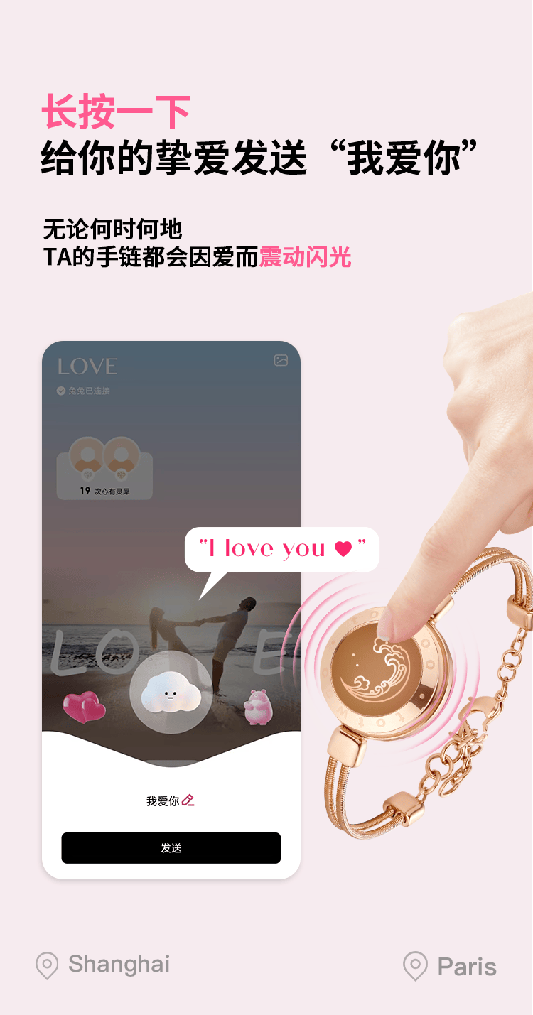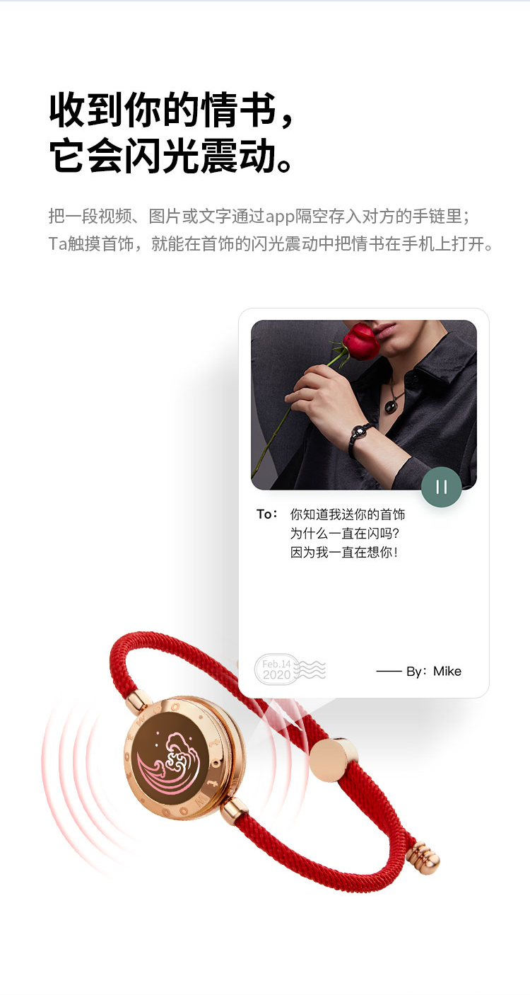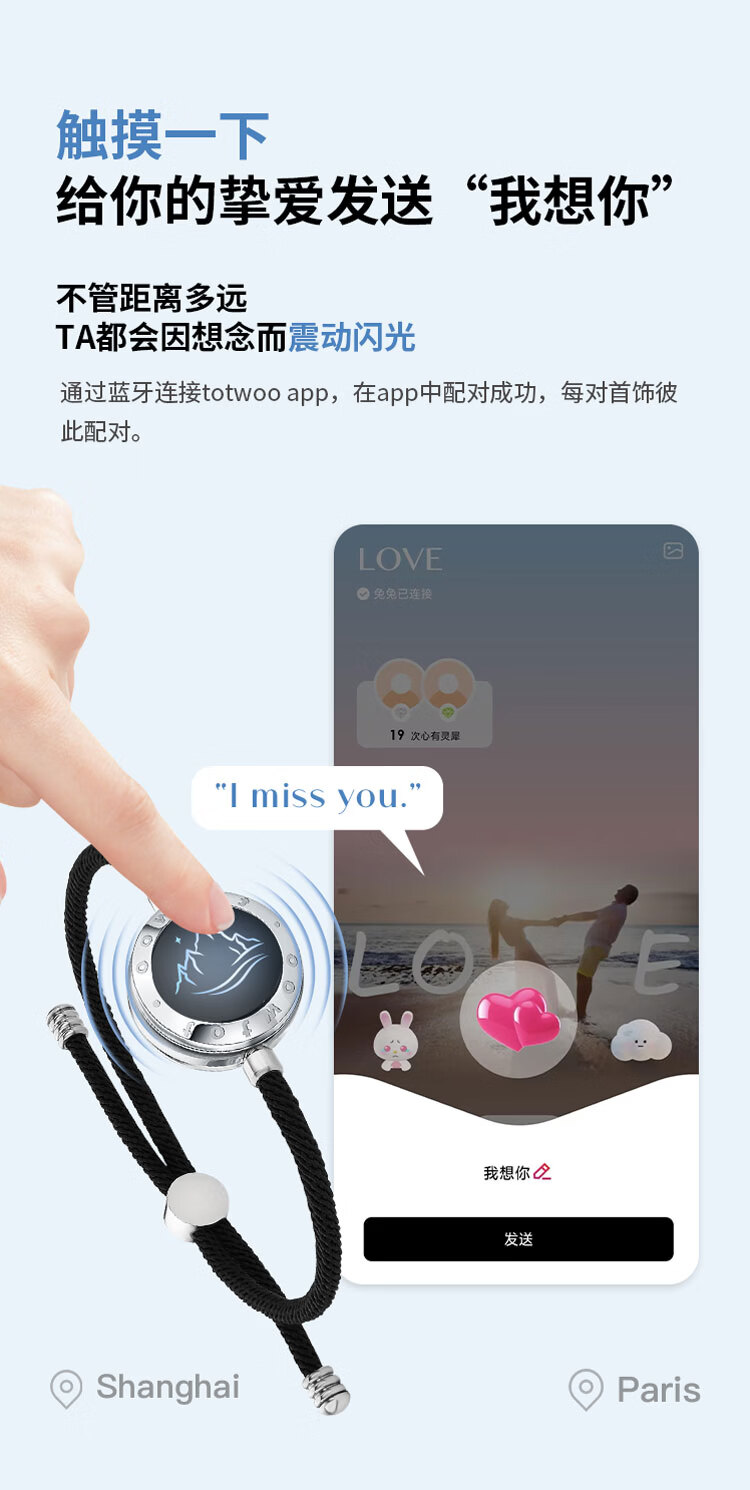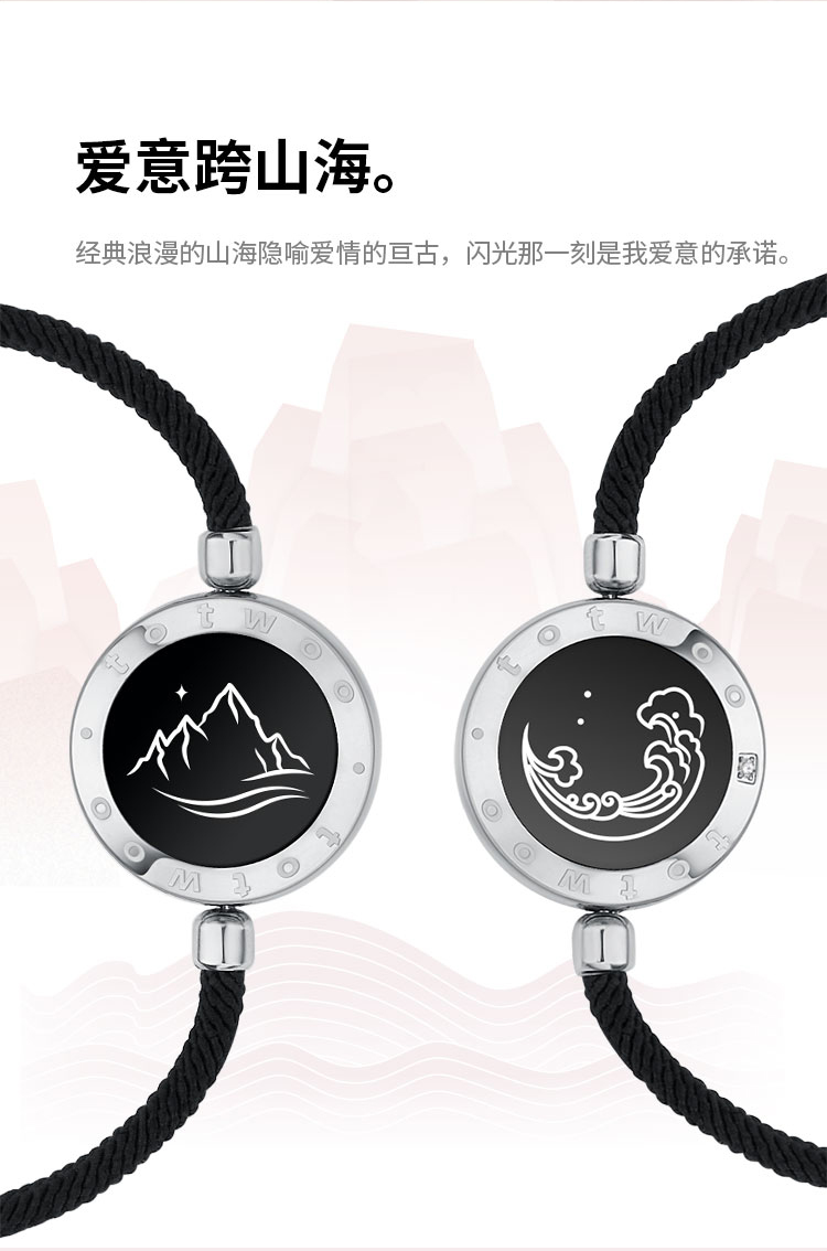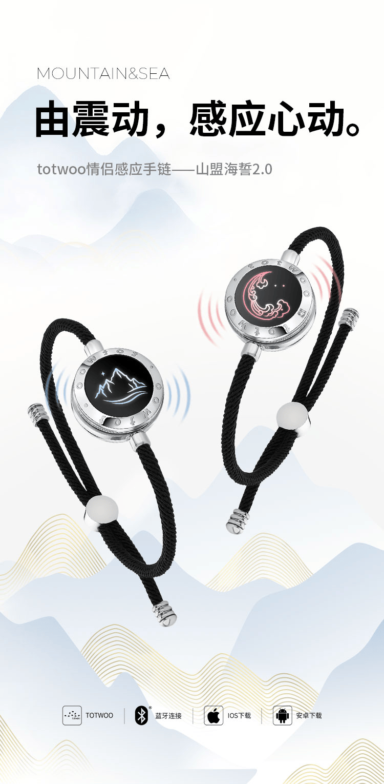 totwoo情侣手链山海异地恋震动感应手链女送女友礼物生日礼物情人节礼物 【京仓】粉雾海串珠3.0