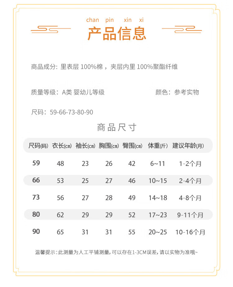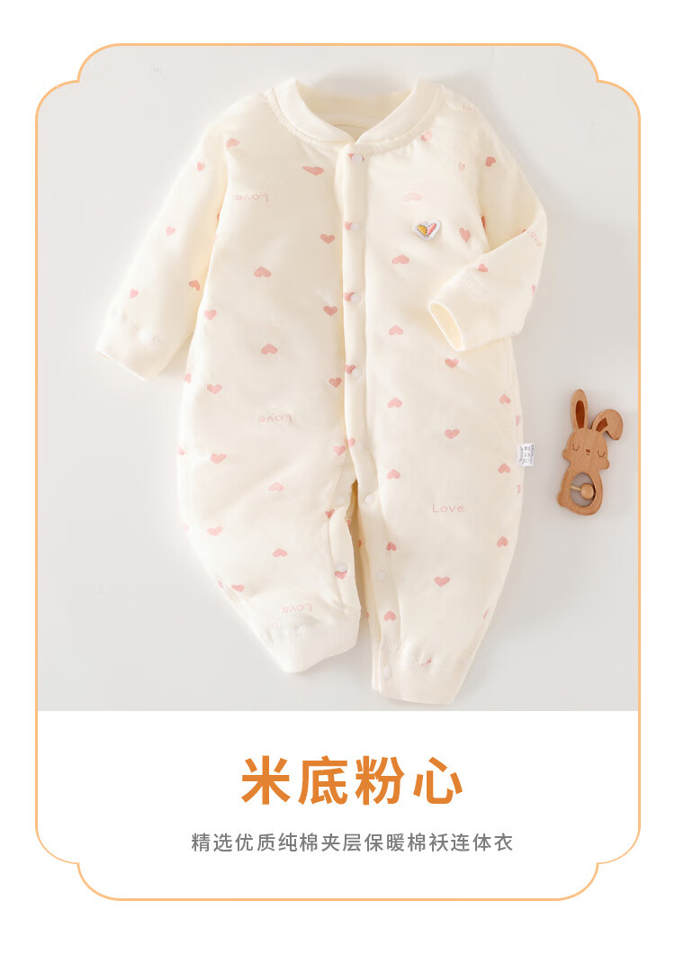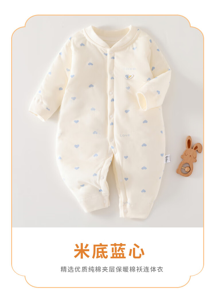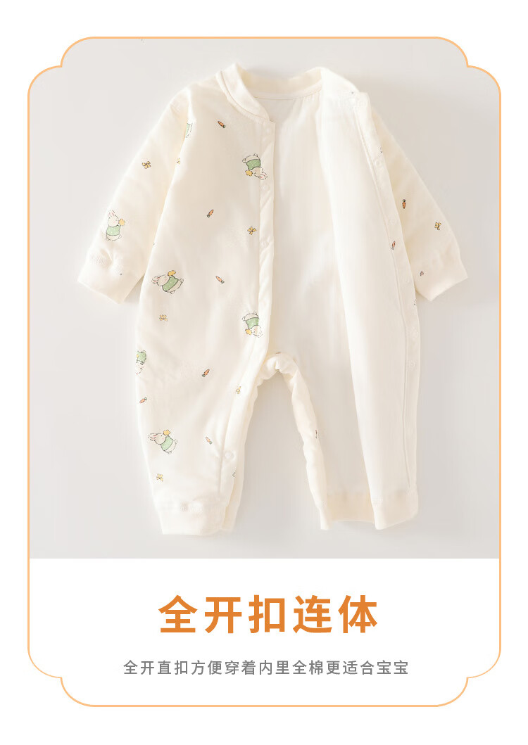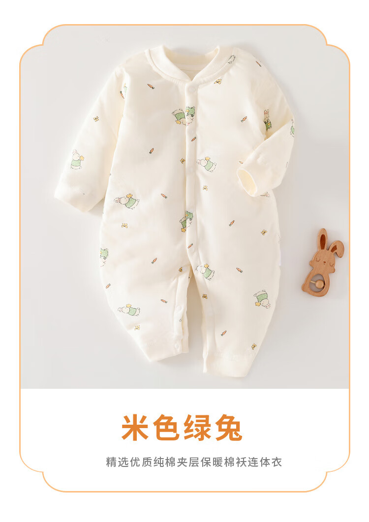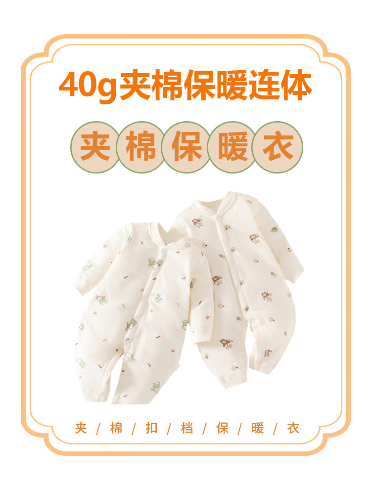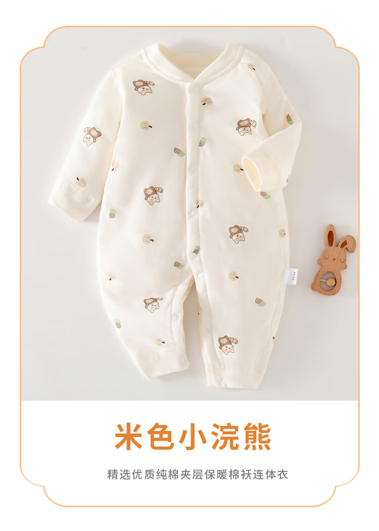 温小影婴儿连体衣秋冬夹棉加厚新生儿棉衣40g薄棉服0-12个月宝宝衣服 X6621米色小浣熊薄棉袄-开扣 66cm(11-14斤合适)