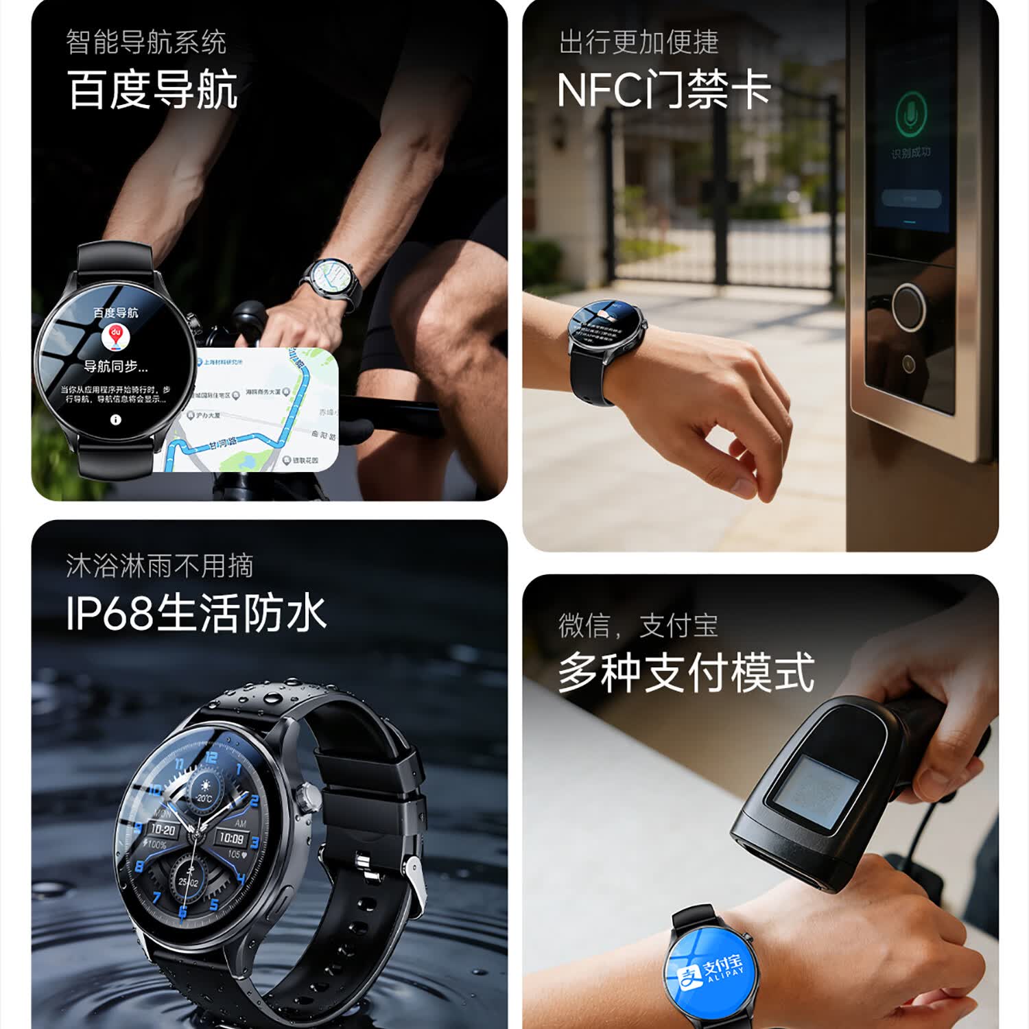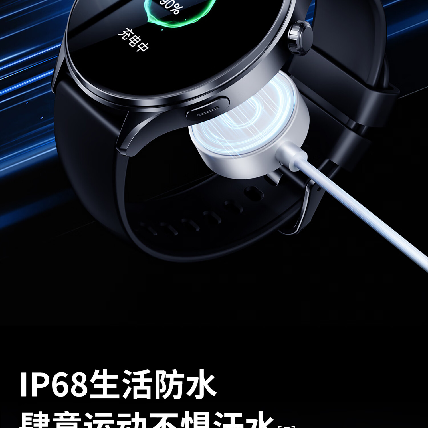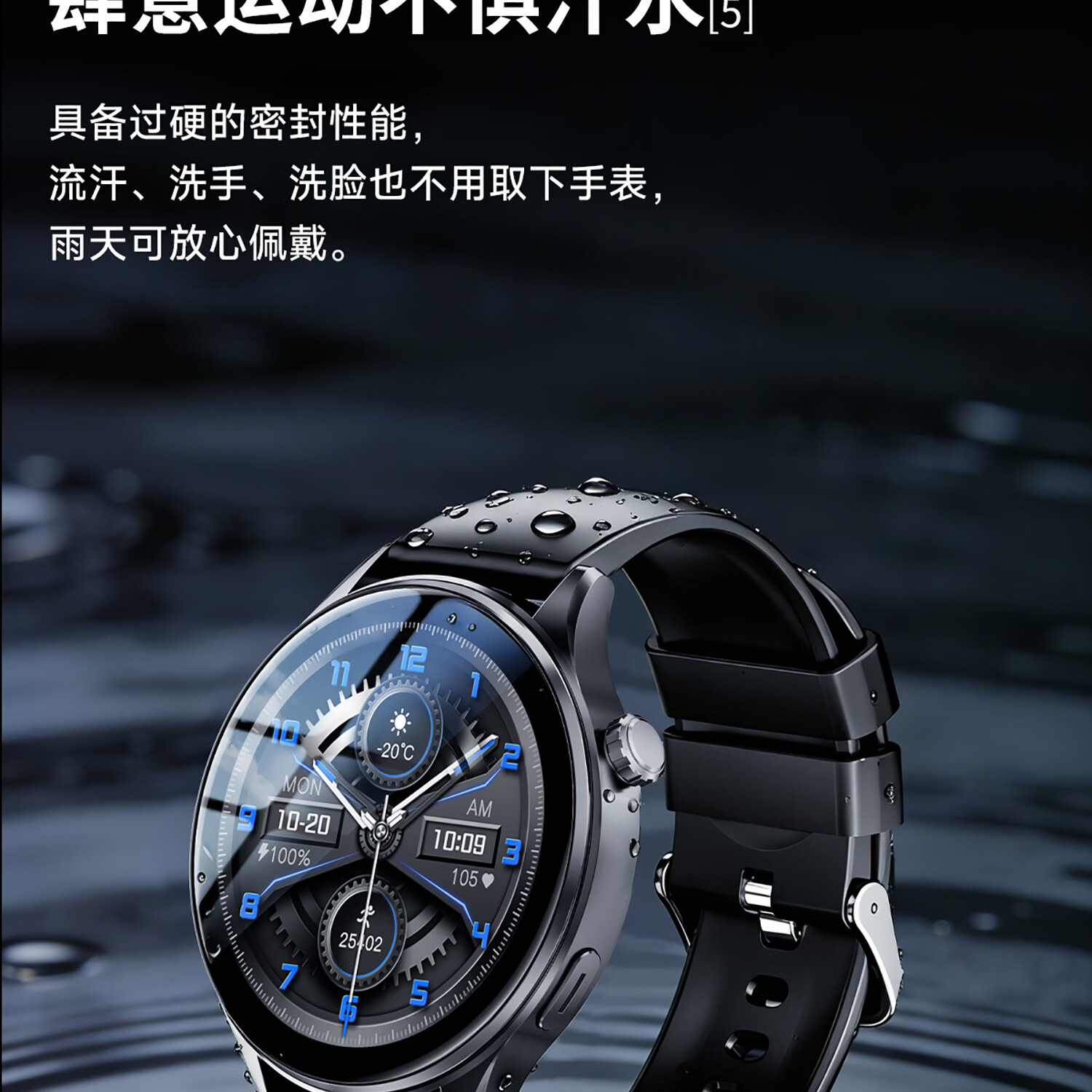 莱思帝智能手表心率血氧监测健身跑步配速IP68防水防汗长续航蓝牙接打电话消息提示运动支付手环watch GPS定位运动轨迹版 高硬度防摔防划痕