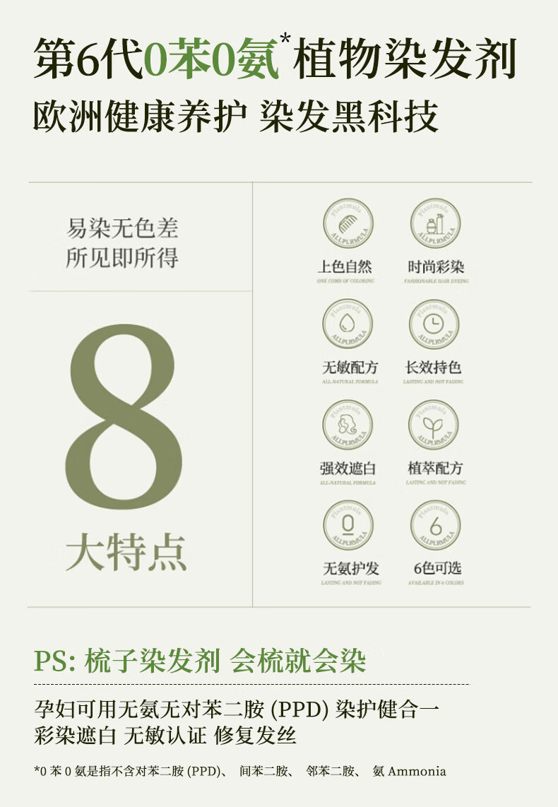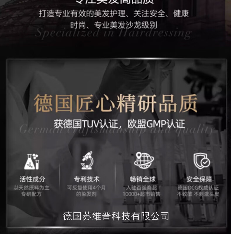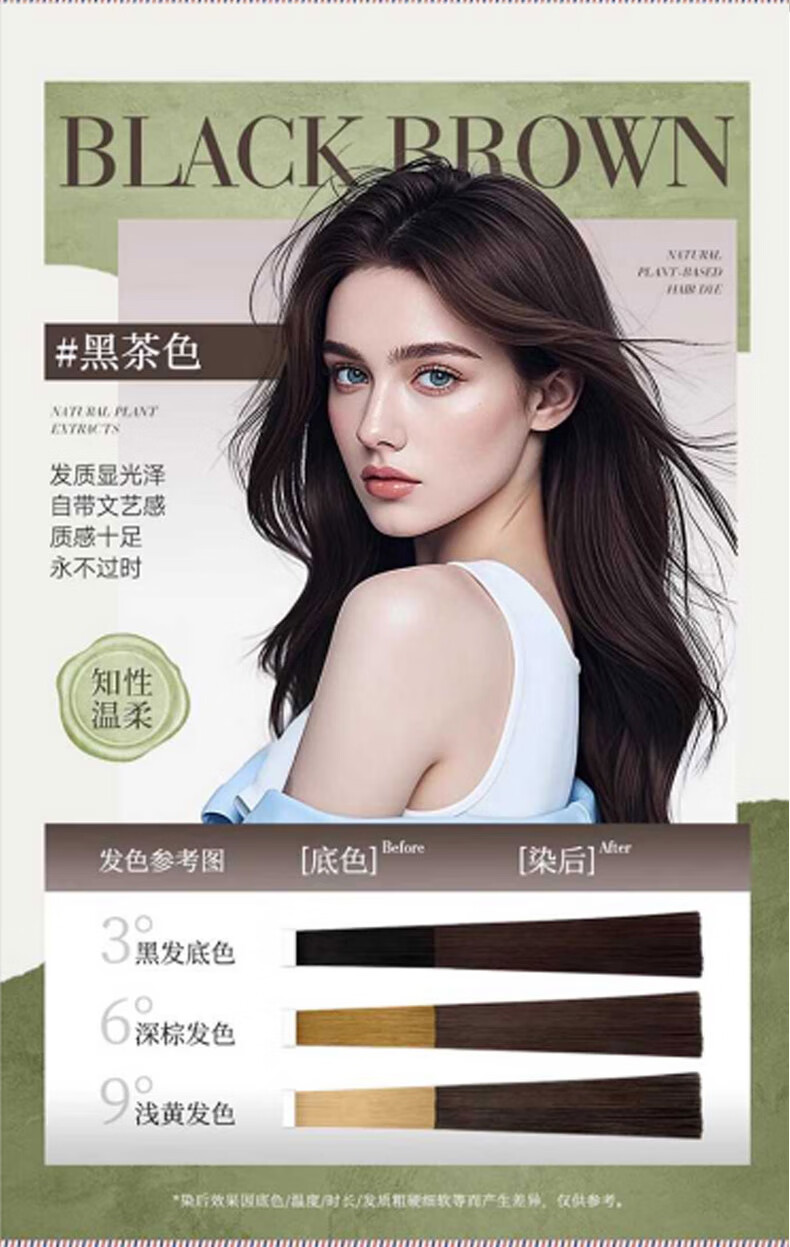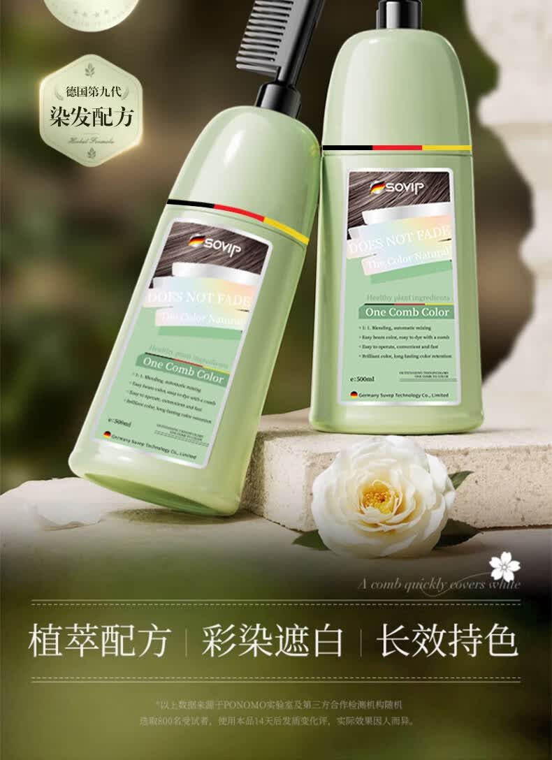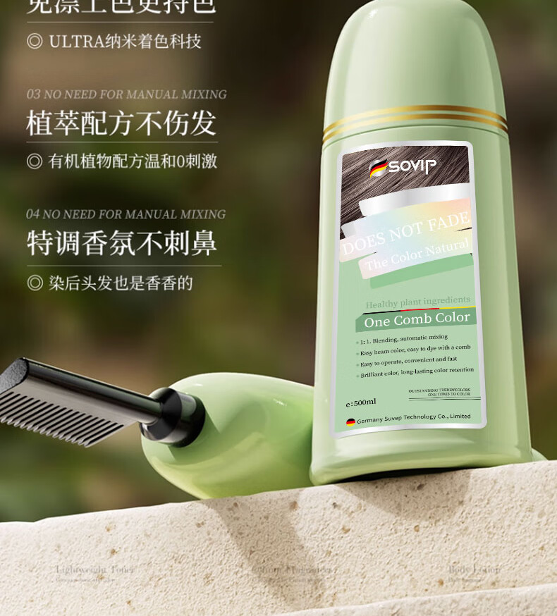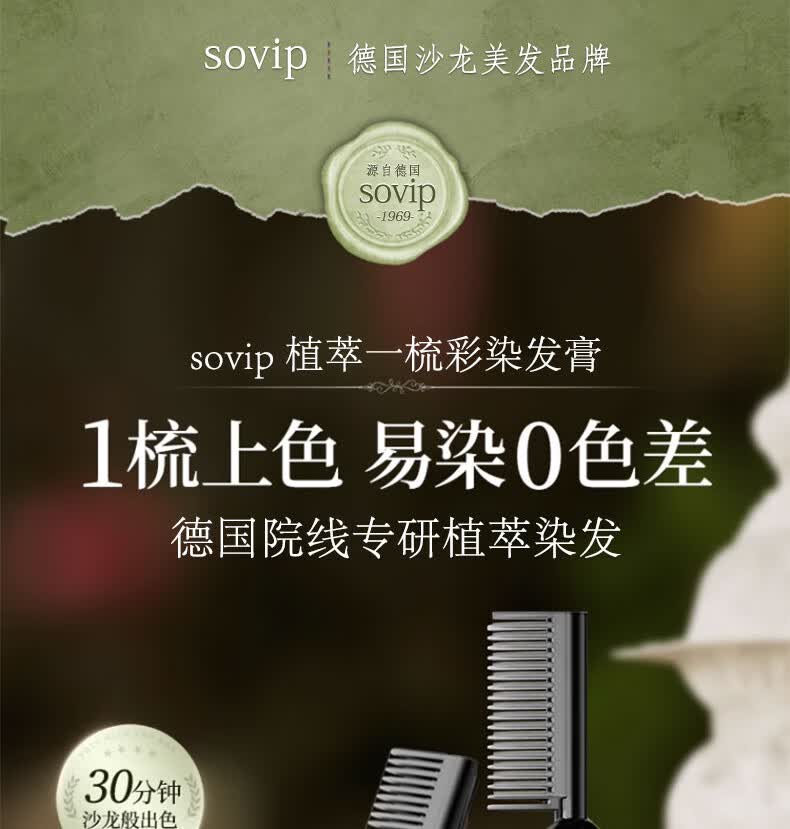 SOVIP德国染发膏天然植物无刺激不沾头皮孕妇一梳黑染发剂盖白发纯黑茶
