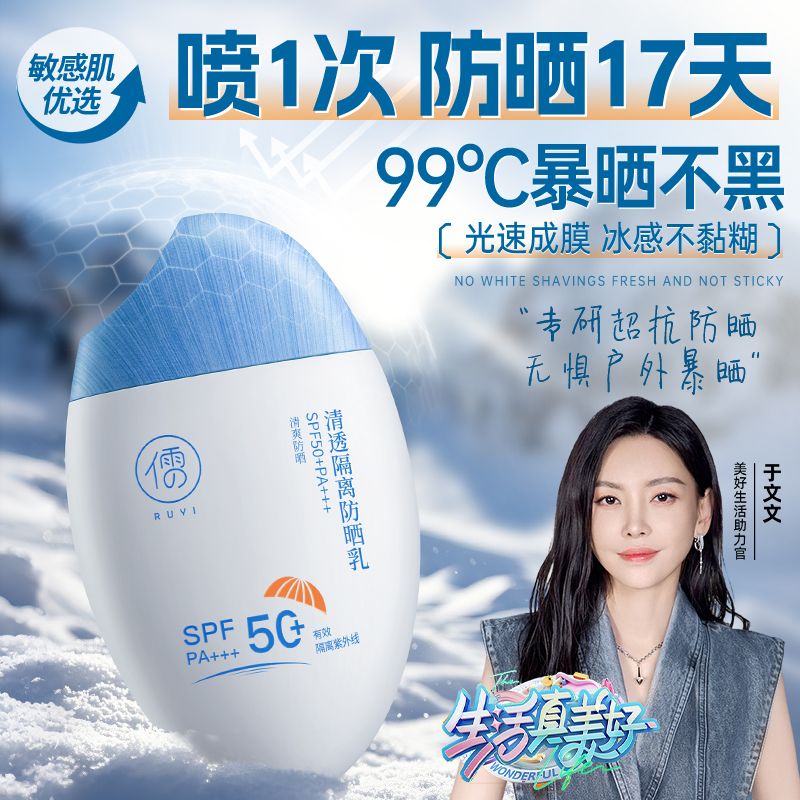 北大研发儒意防晒霜乳50倍防紫外线嫩白清爽防水防汗敏肌军训学生