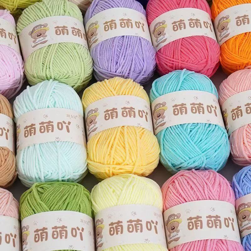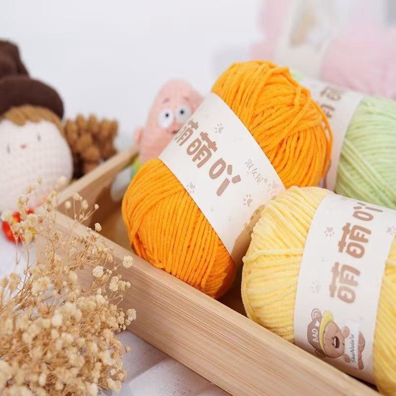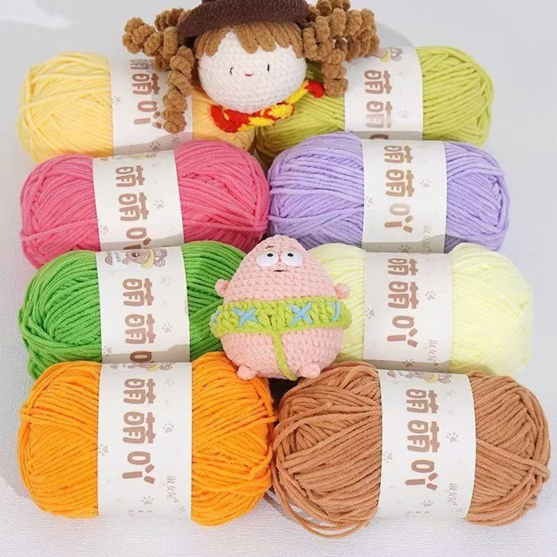 萌萌吖毛线萌小丫同款雪尼尔金丝光泽绒细冰条线织围巾钩玩偶钩拖